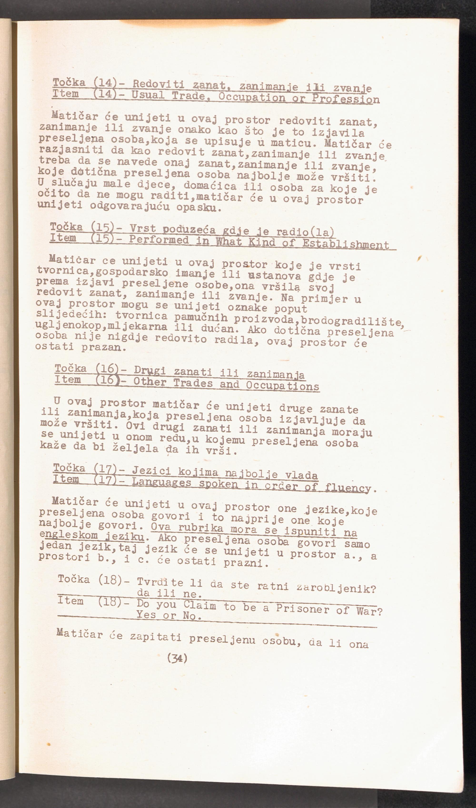 Displaced Persons - Registration Instructions Chapter III (Croat)