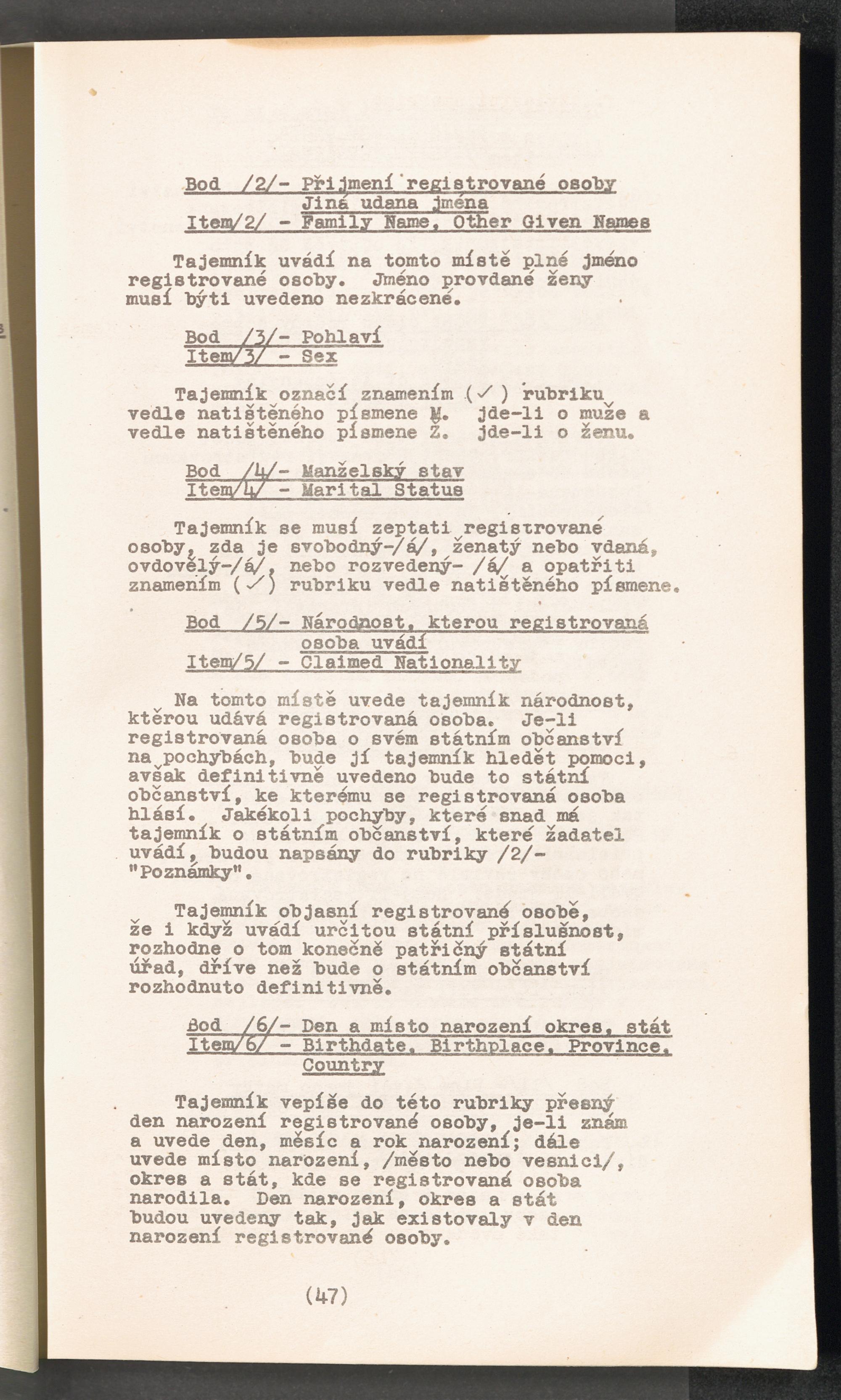 Displaced Persons - Registration Instructions Chapter IV (Czech)