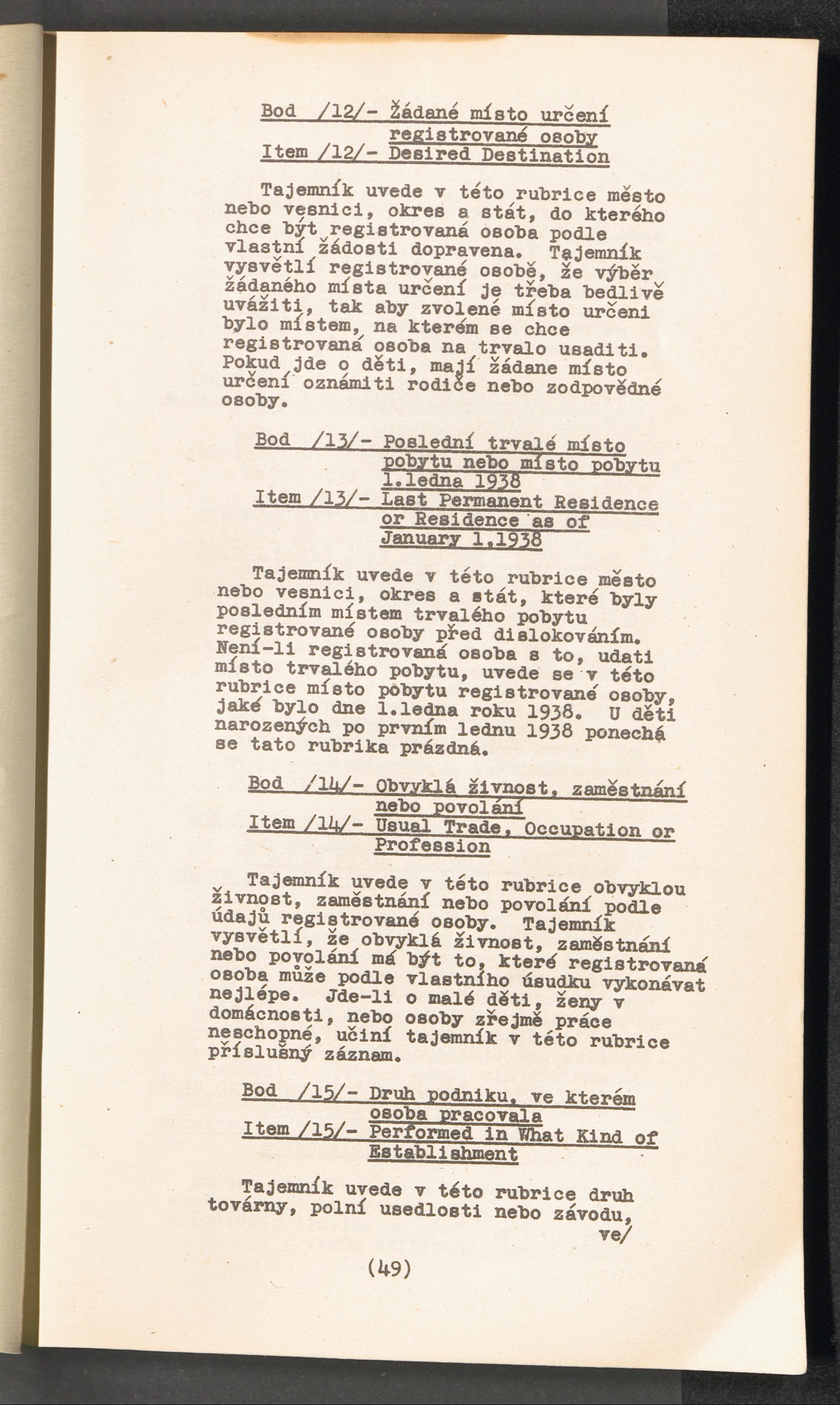 Displaced Persons - Registration Instructions Chapter IV (Czech)