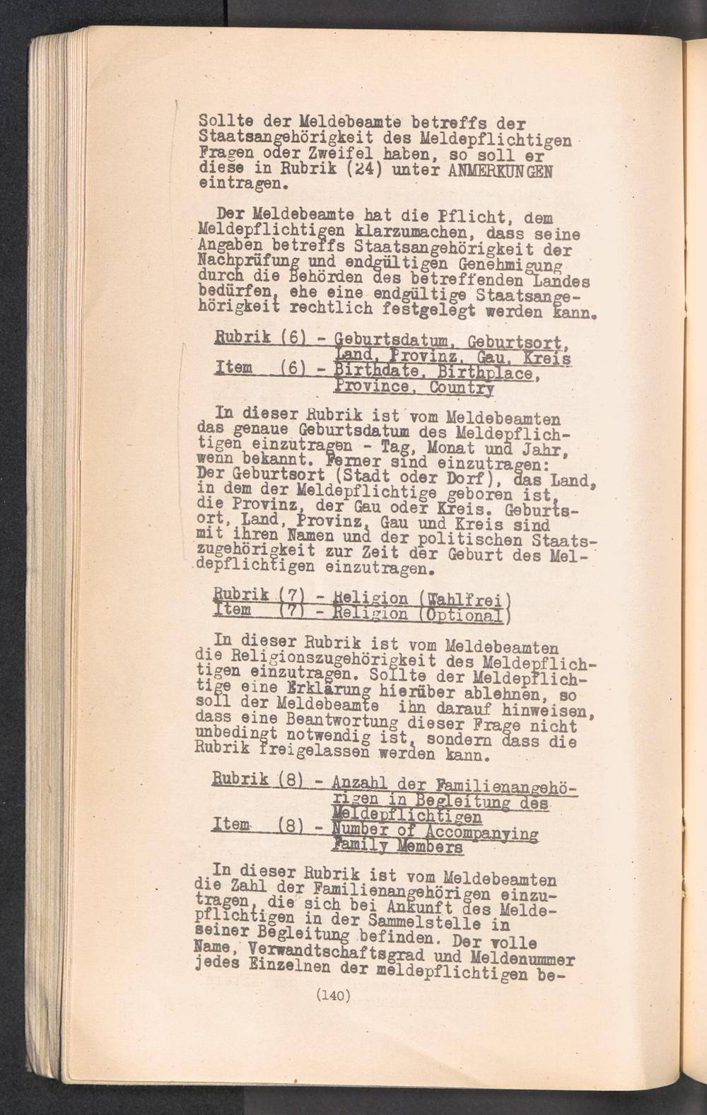 Displaced Persons - Registration Instructions Chapter X (German)