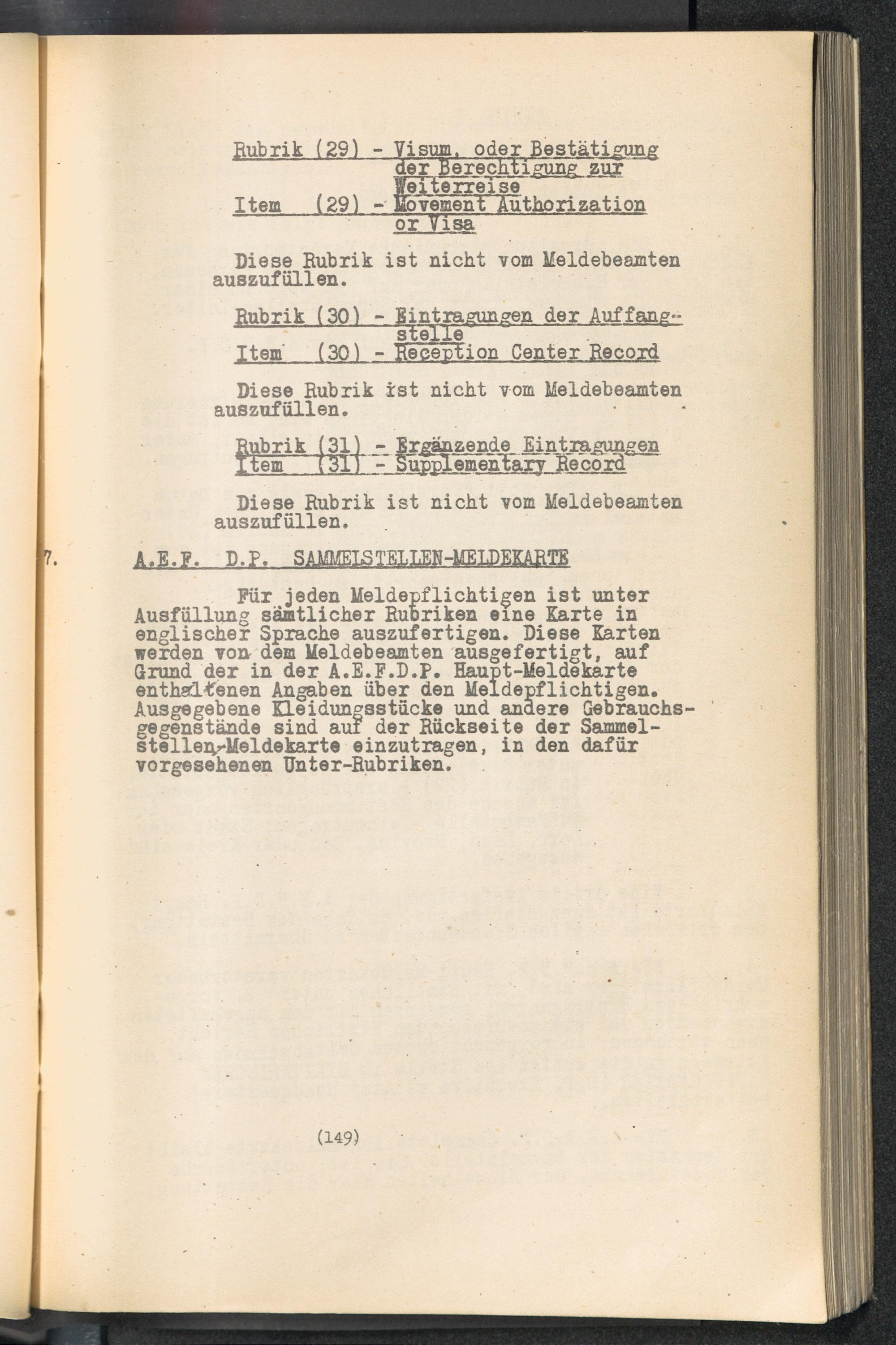 Displaced Persons - Registration Instructions Chapter X (German)