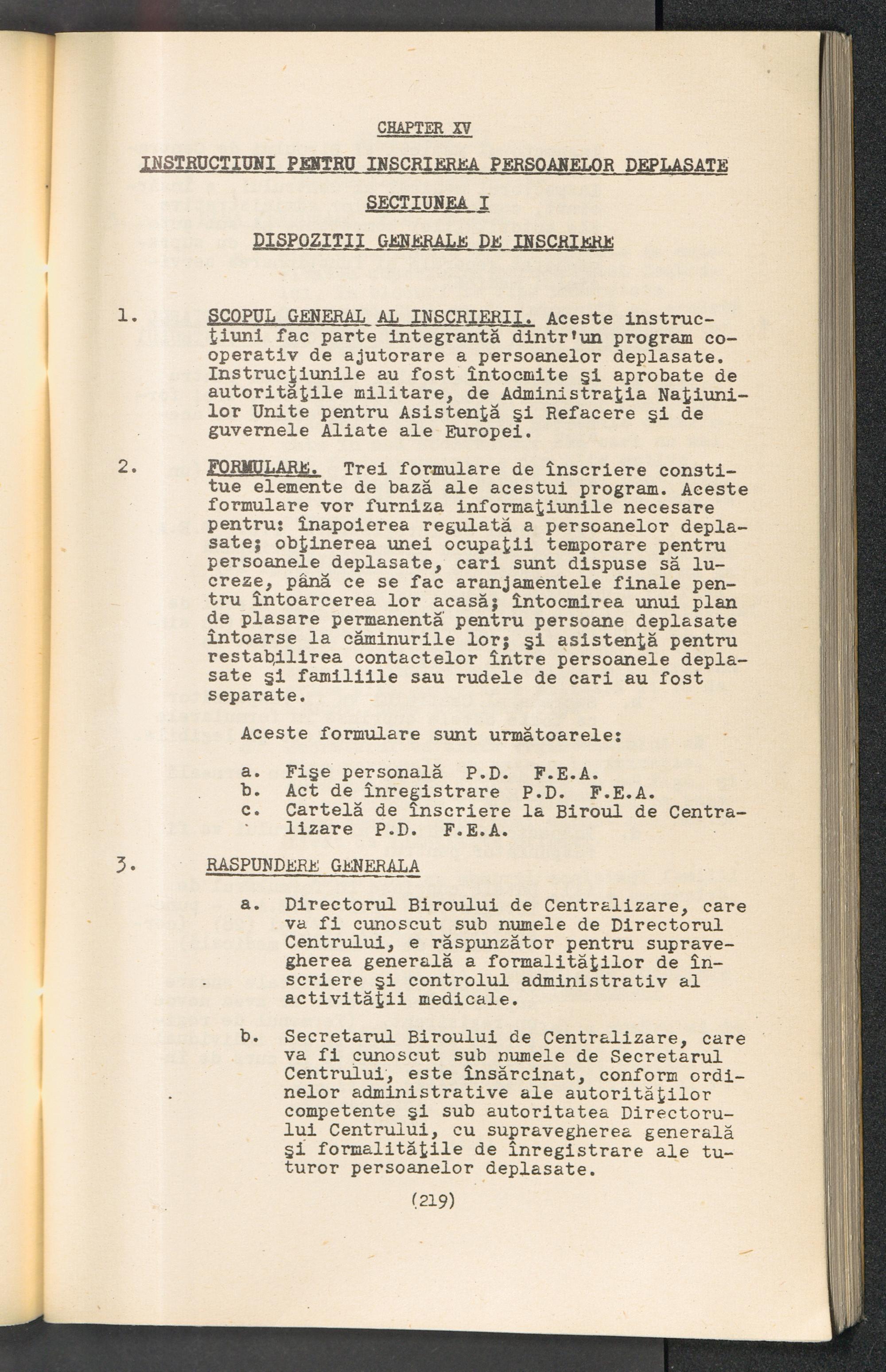 Displaced Persons - Registration Instructions Chapter XV (Rumanian)