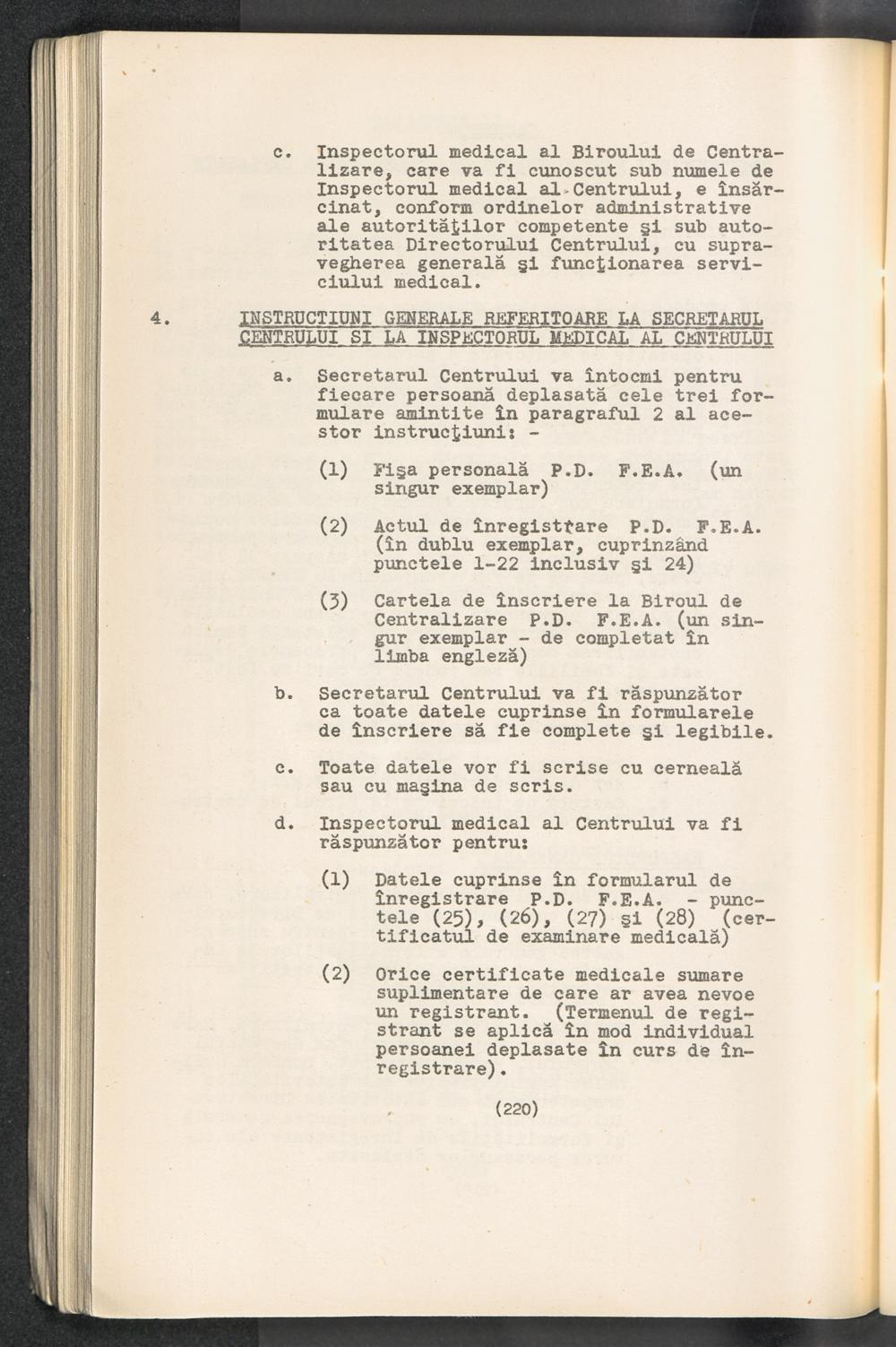 Displaced Persons - Registration Instructions Chapter XV (Rumanian)