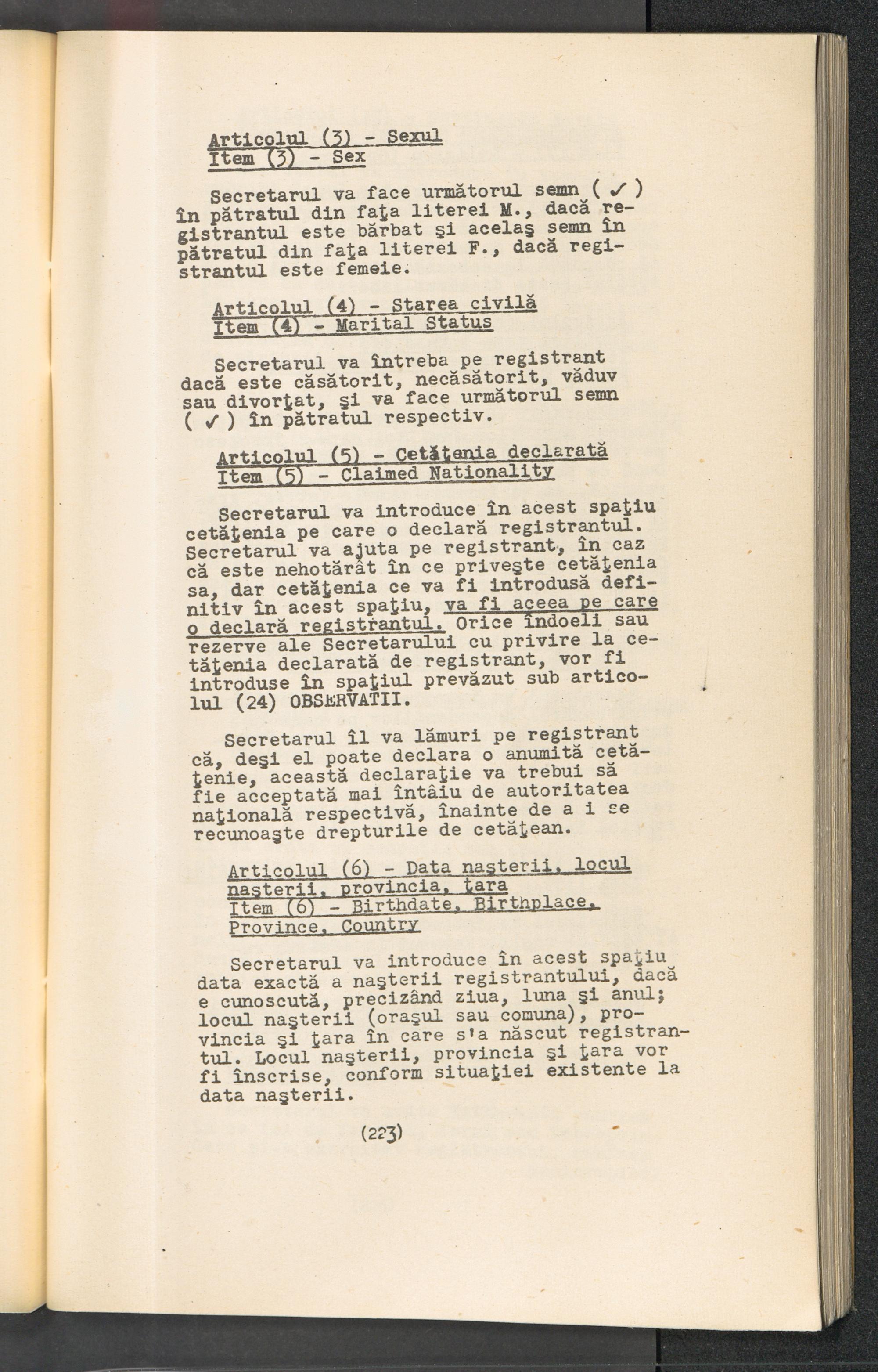 Displaced Persons - Registration Instructions Chapter XV (Rumanian)