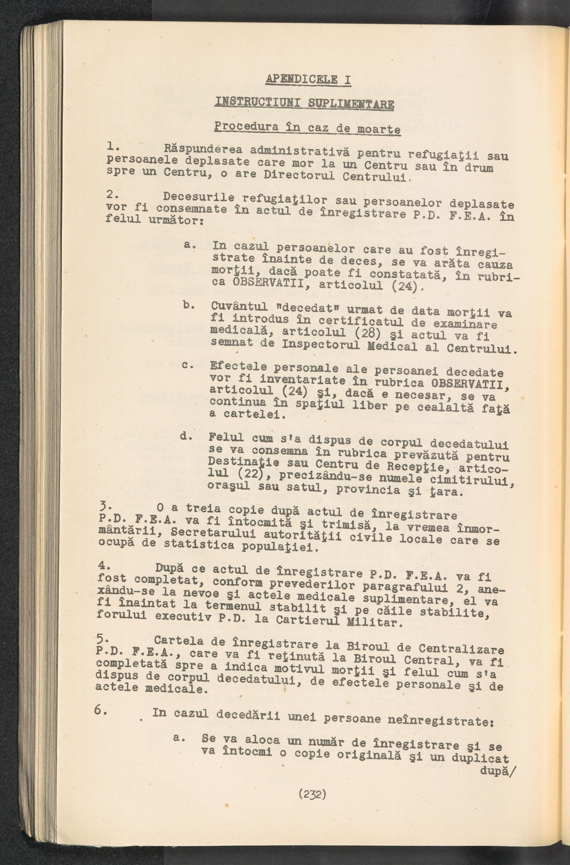 Displaced Persons - Registration Instructions Chapter XV (Rumanian)
