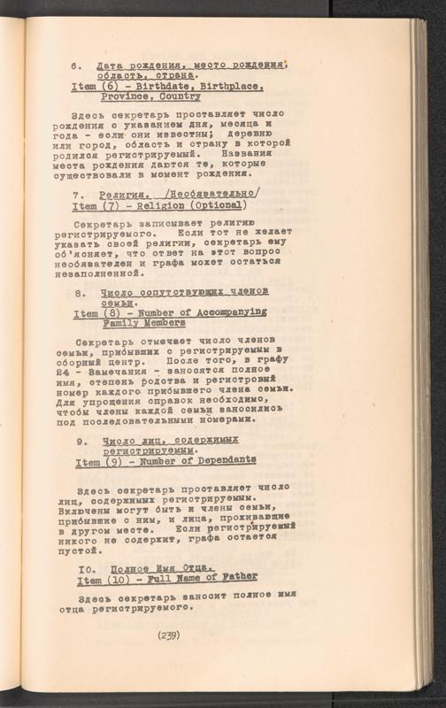 Displaced Persons - Registration Instructions Chapter XVI (Russian)
