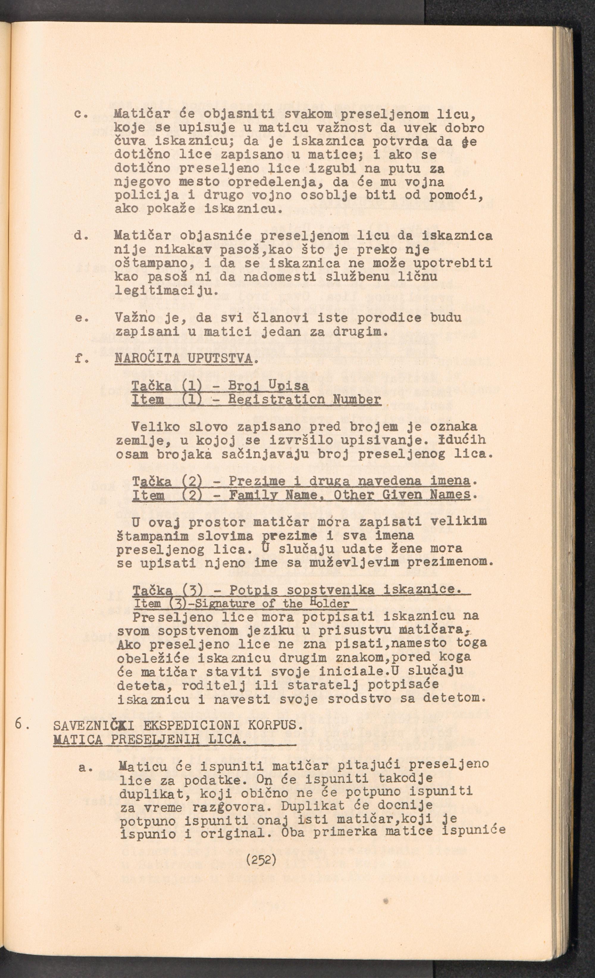 Displaced Persons - Registration Instructions Chapter XVII (Serbian)