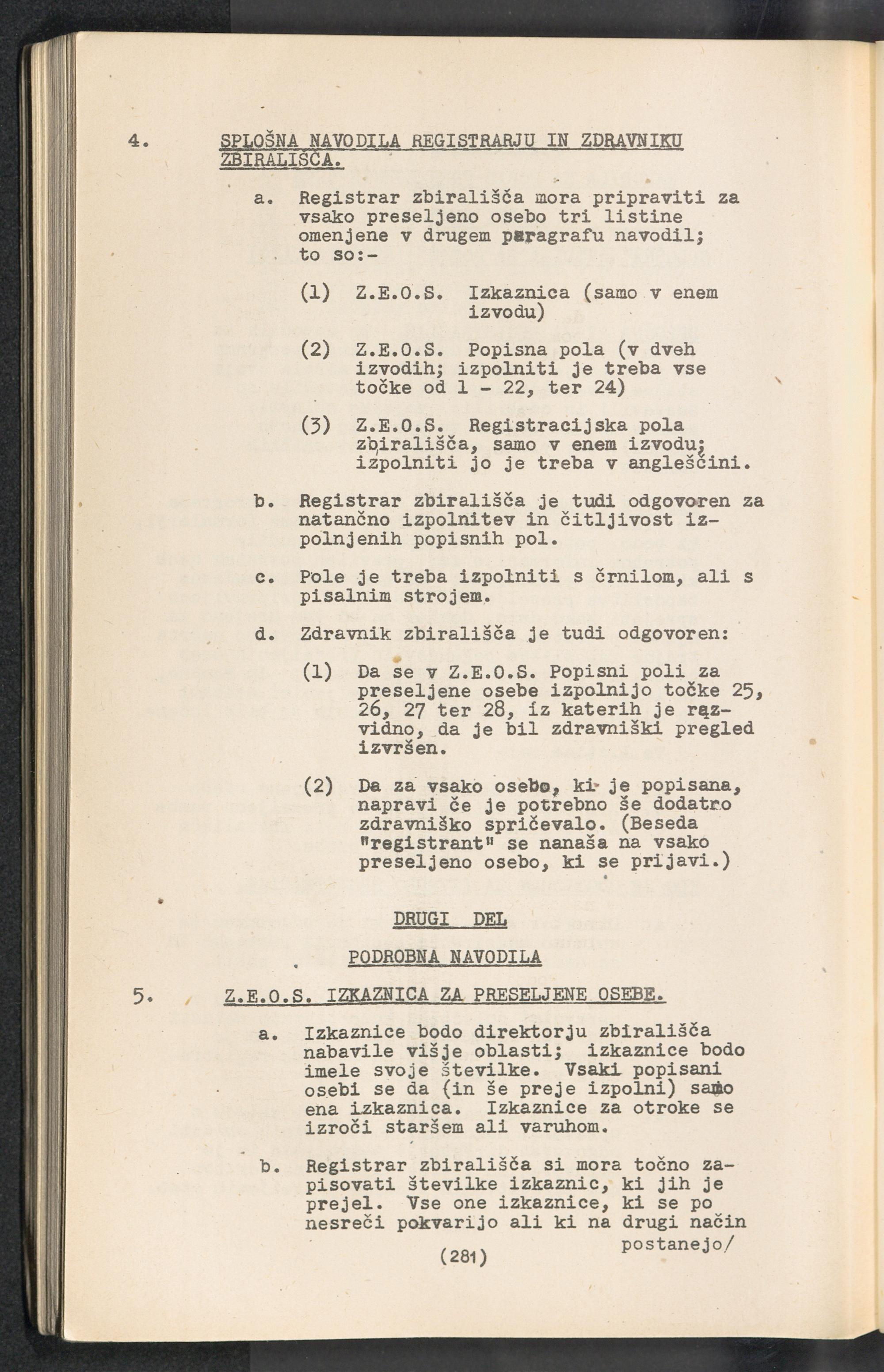 Displaced Persons - Registration Instructions Chapter XIX (Slovene)