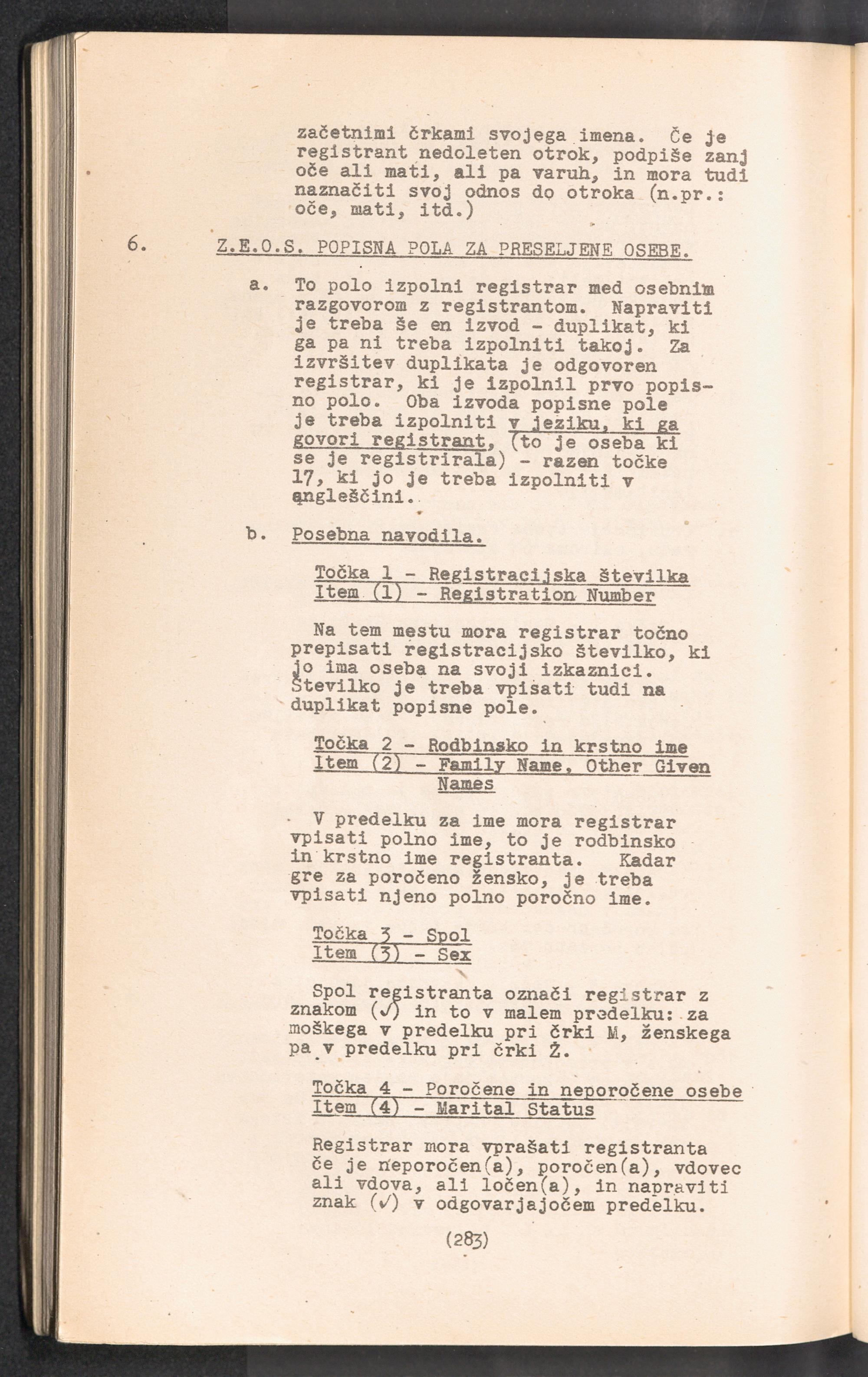 Displaced Persons - Registration Instructions Chapter XIX (Slovene)