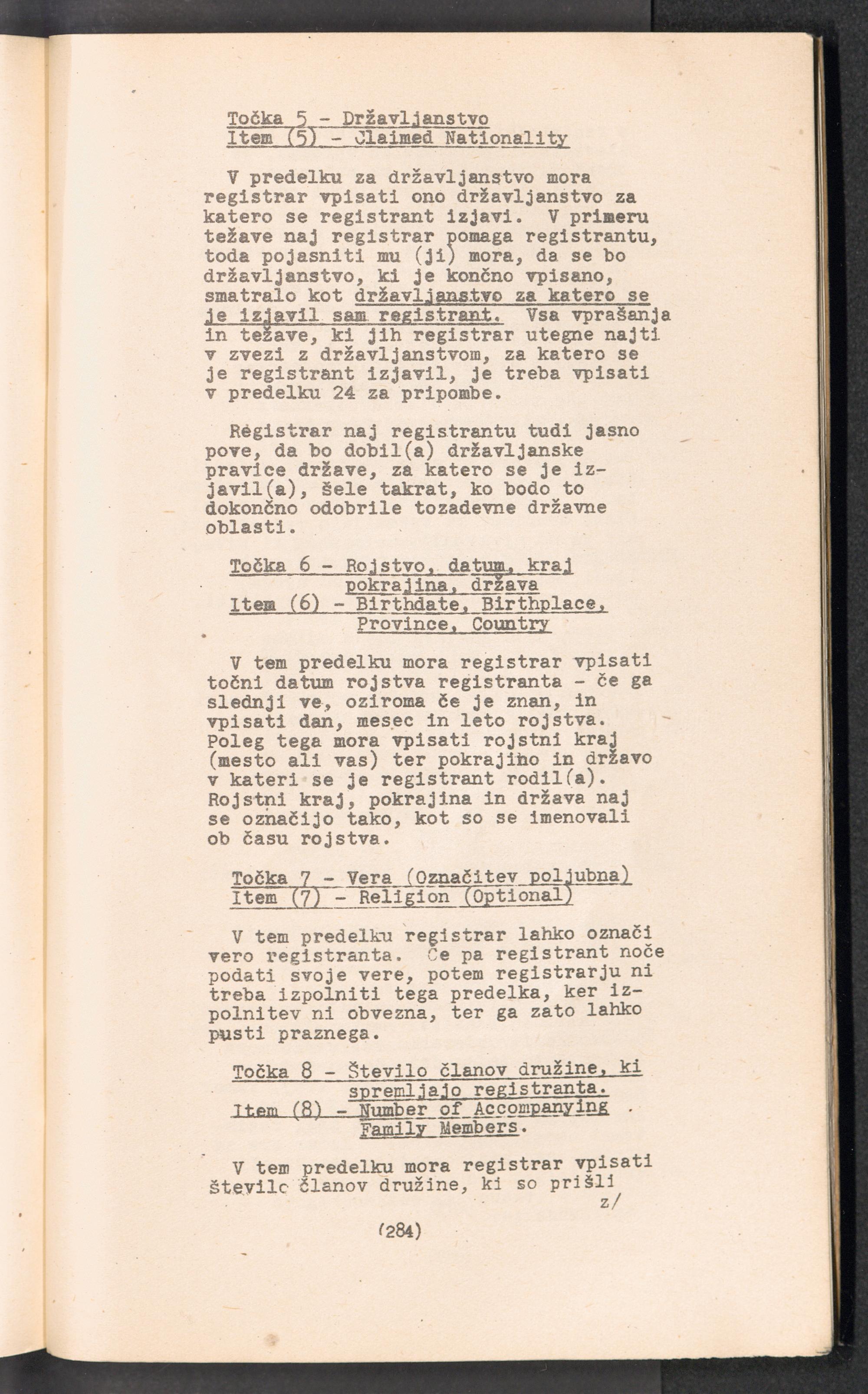 Displaced Persons - Registration Instructions Chapter XIX (Slovene)