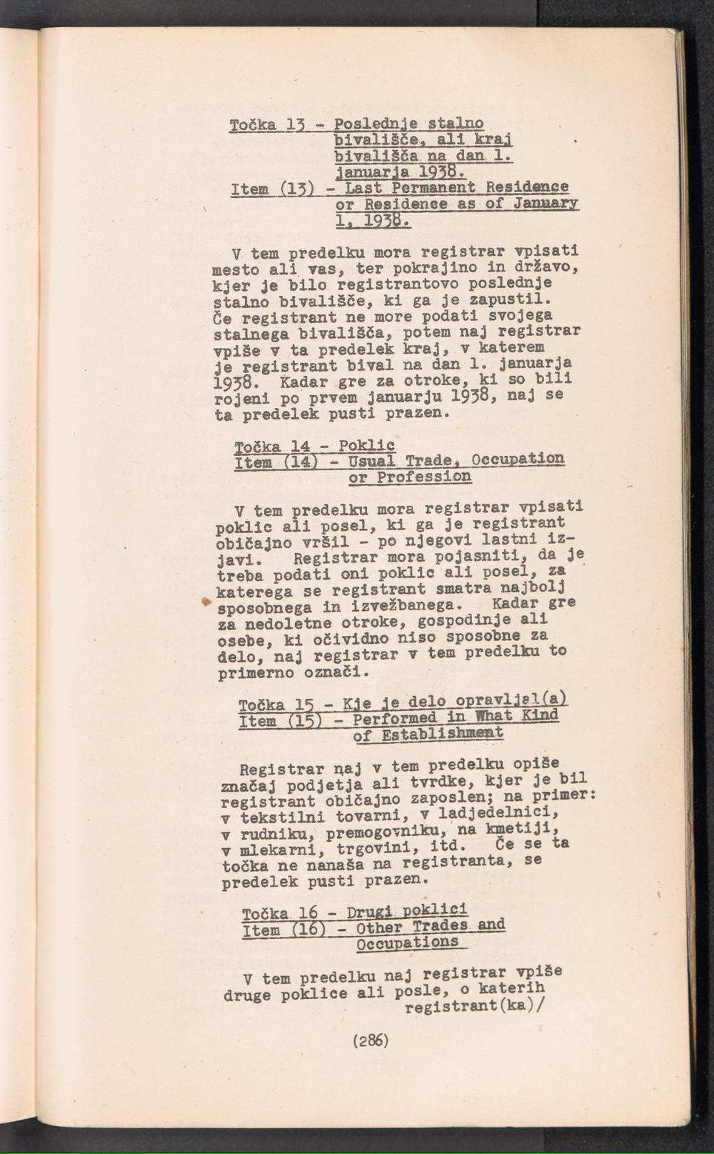 Displaced Persons - Registration Instructions Chapter XIX (Slovene)