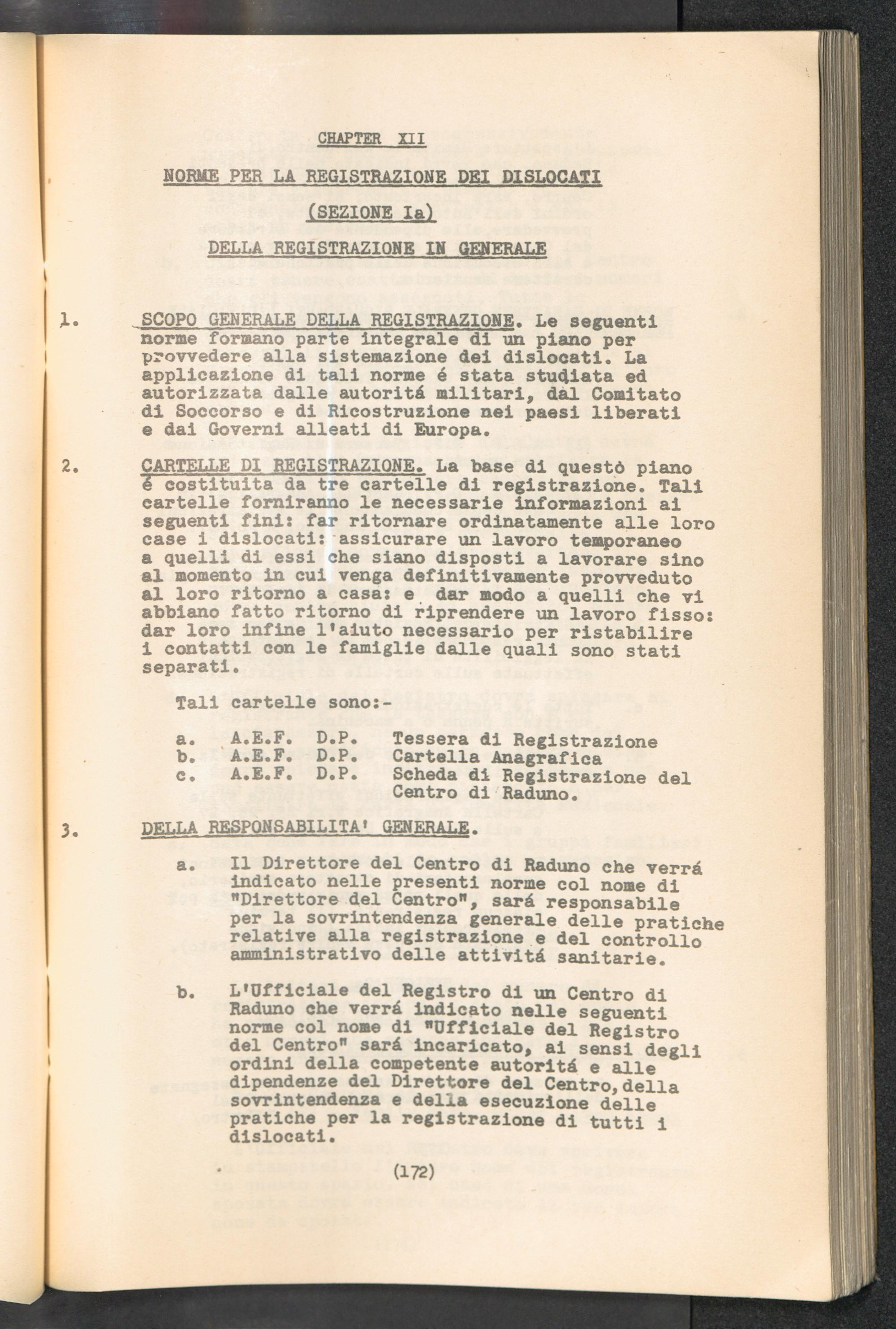 Displaced Persons - Registration Instructions Chapter XII (Italian)