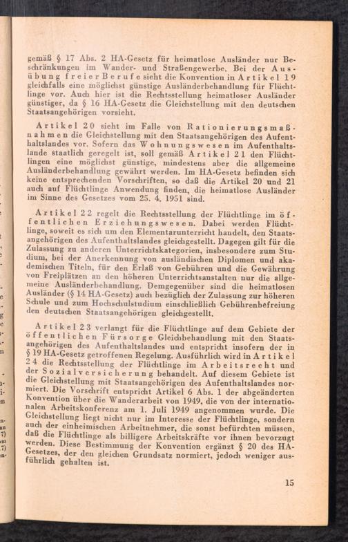 Der Ratgeber für heimatlose Ausländer und sonstige ausländische Flüchtlinge : Rechte und Pflichten nach der Internationalen Konvention über die Rechtsstellung der Flüchtlinge vom 28. Juli 1951 und dem Gesetz über die Rechtsstellung heimatloser Ausländer im Bundesgebiet vom 25. April 1951 / Bundesminister für Vertriebene, Flüchtlinge und Kriegsgeschädigte