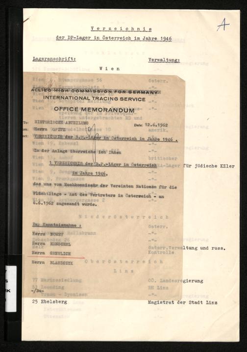Verzeichnis der DP-Lager in Österreich im Jahre 1946
