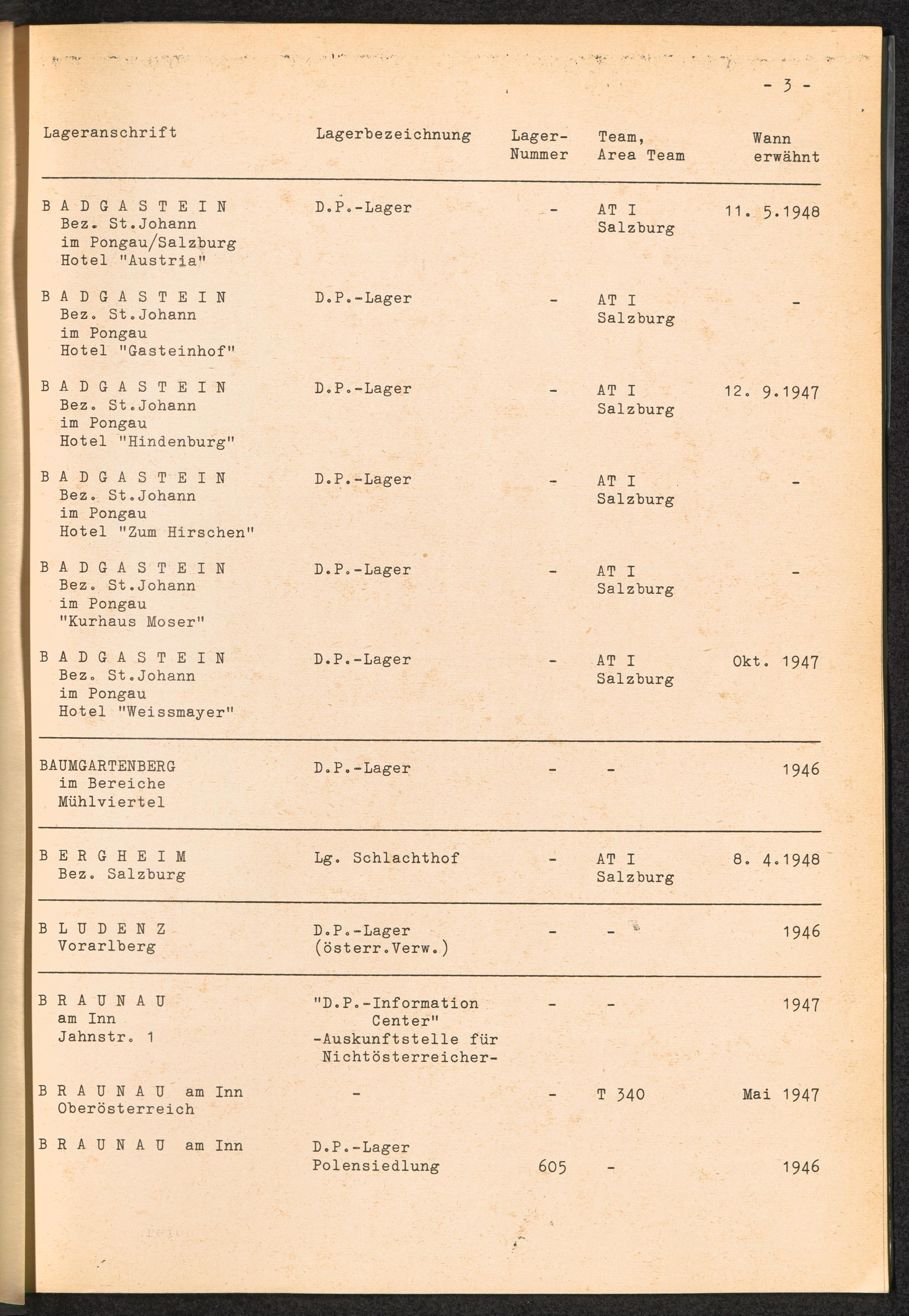Alphabetisches Verzeichnis der DP-Lager in Österreich / International Tracing Service