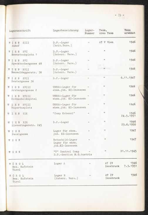 Verzeichnis der DP-Lager in Österreich / International Tracing Service