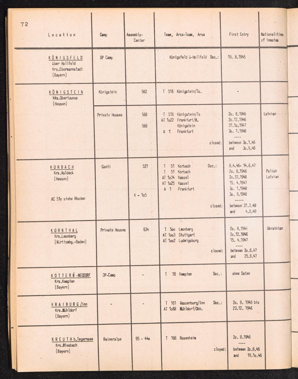 Alphabetisches Verzeichnis der DP-Lager in der US-Zone DeutschlandsAlphabetical Register of DP-Camps in US-Zone of Germany