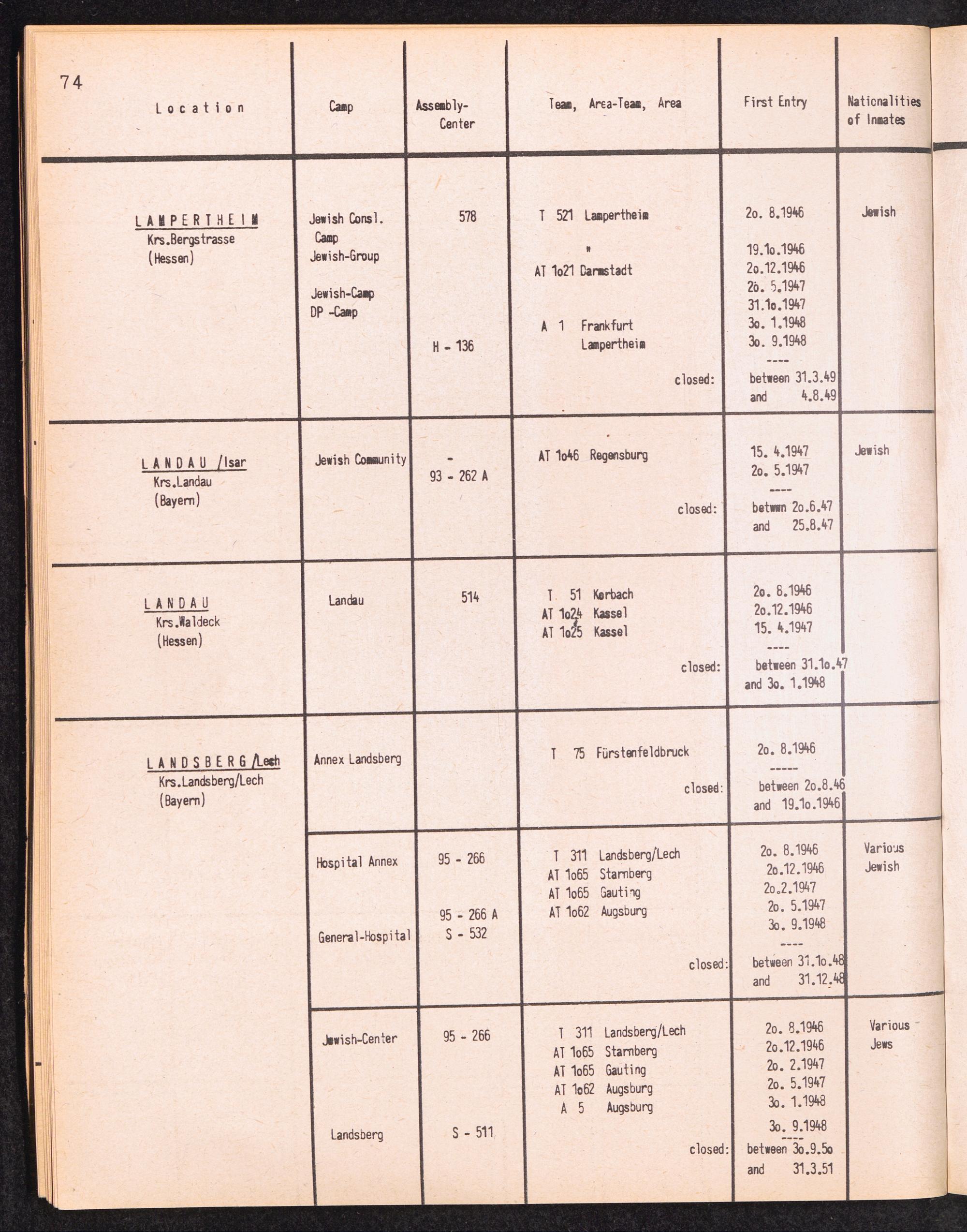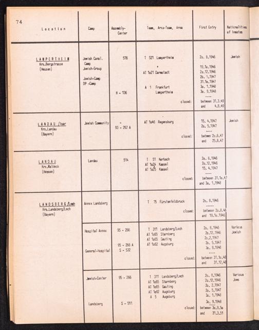 Alphabetisches Verzeichnis der DP-Lager in der US-Zone DeutschlandsAlphabetical Register of DP-Camps in US-Zone of Germany