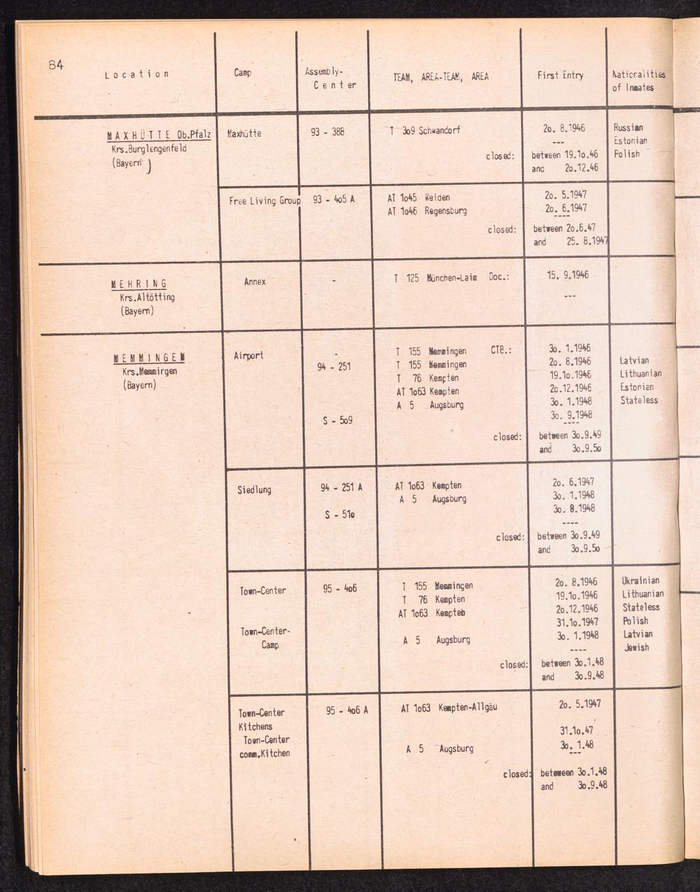 Alphabetisches Verzeichnis der DP-Lager in der US-Zone DeutschlandsAlphabetical Register of DP-Camps in US-Zone of Germany