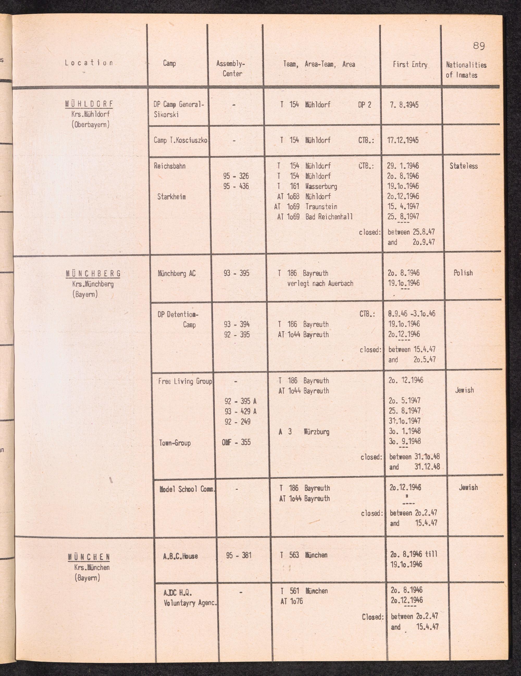 Alphabetisches Verzeichnis der DP-Lager in der US-Zone DeutschlandsAlphabetical Register of DP-Camps in US-Zone of Germany
