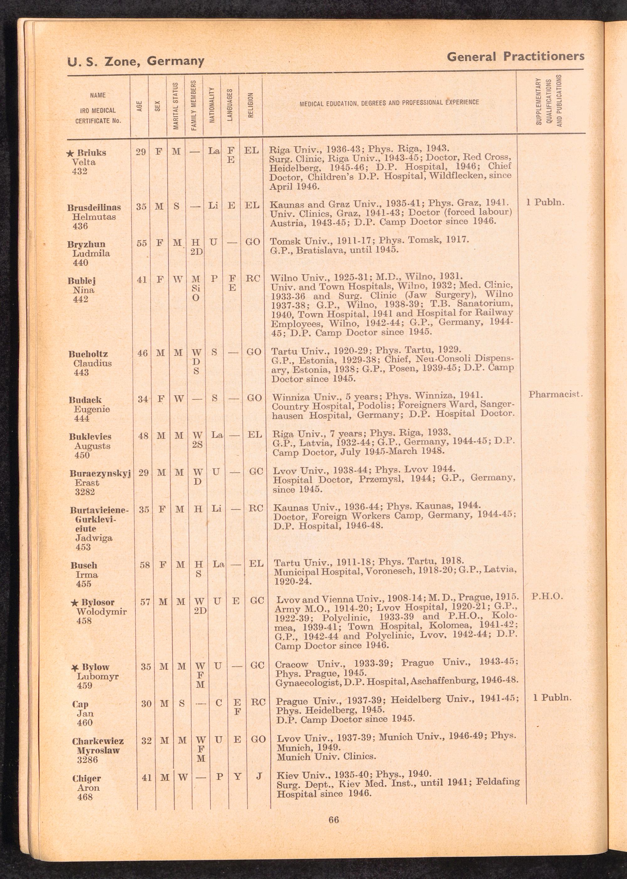Displaced Persons Professional Medical Register / International Refugee Organization