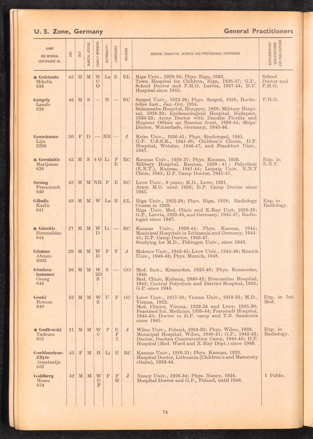 Displaced Persons Professional Medical Register / International Refugee Organization