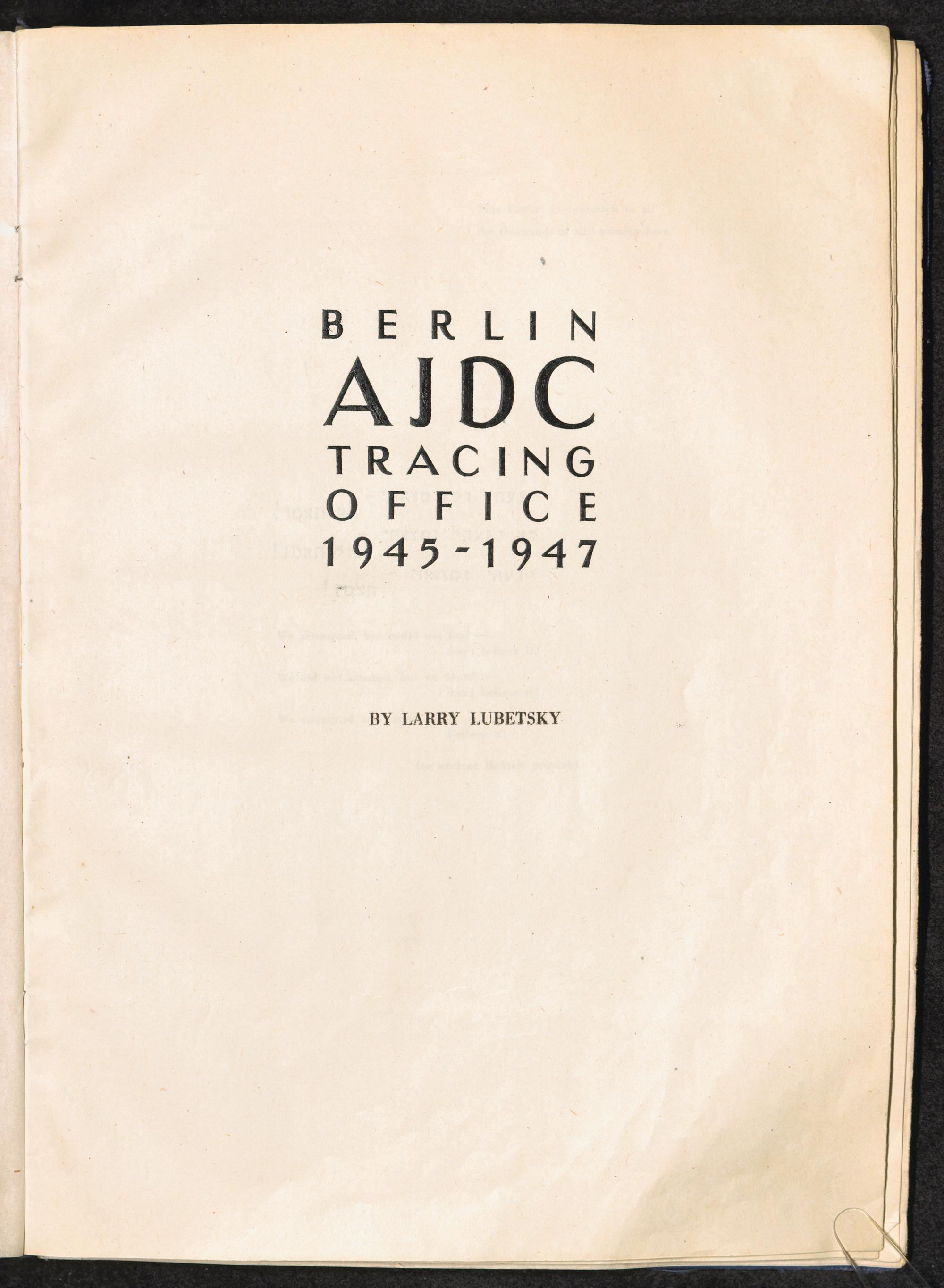 Berlin AJDC Tracing Office 1945 - 1947 Titelblatt