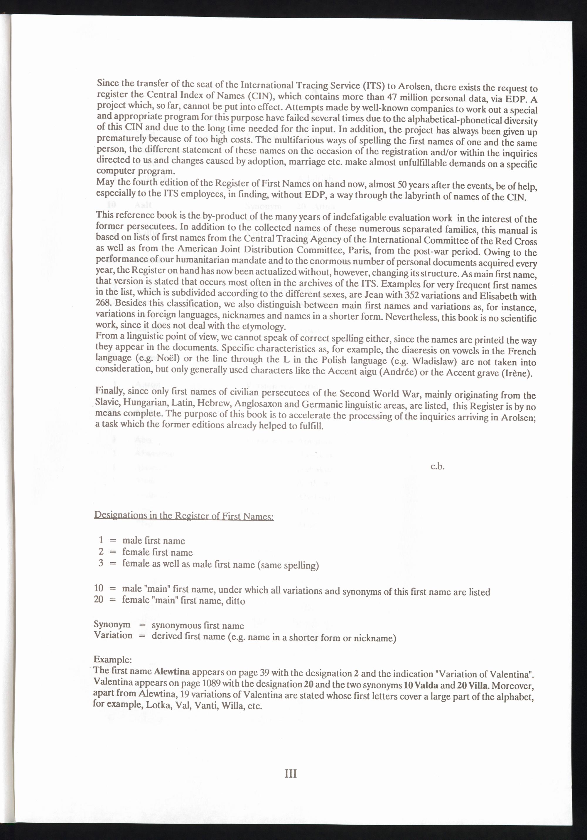 Register of first names / International Tracing Service (ITS)Verzeichnis der Vornamen / International Tracing Service (ITS)Répertoire des prenoms / International Tracing Service (ITS)