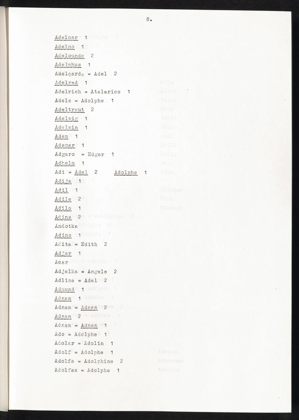 Band 1 (1974) Aufstellung der Vornamen, A - JBand 1 (1974) Liste des prenoms, A - JBand 1 (1974) List of first names, A - J