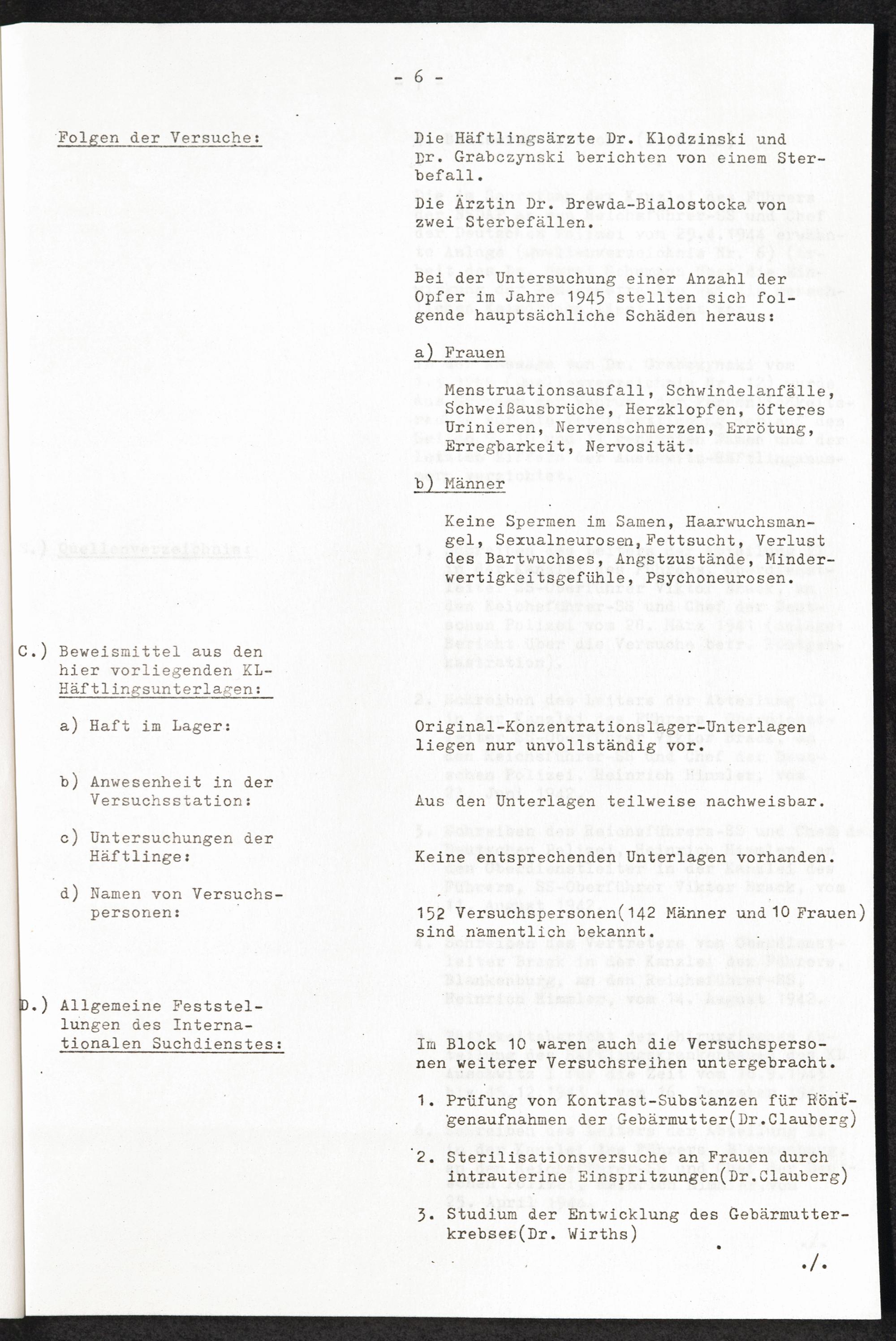 Pseudo-medizinische Versuche im KL Auschwitz : Sterilisations- (Kastrations-) Versuche an Frauen und Männern durch Röntgenstrahlen / Internationaler Suchdienst (ITS)