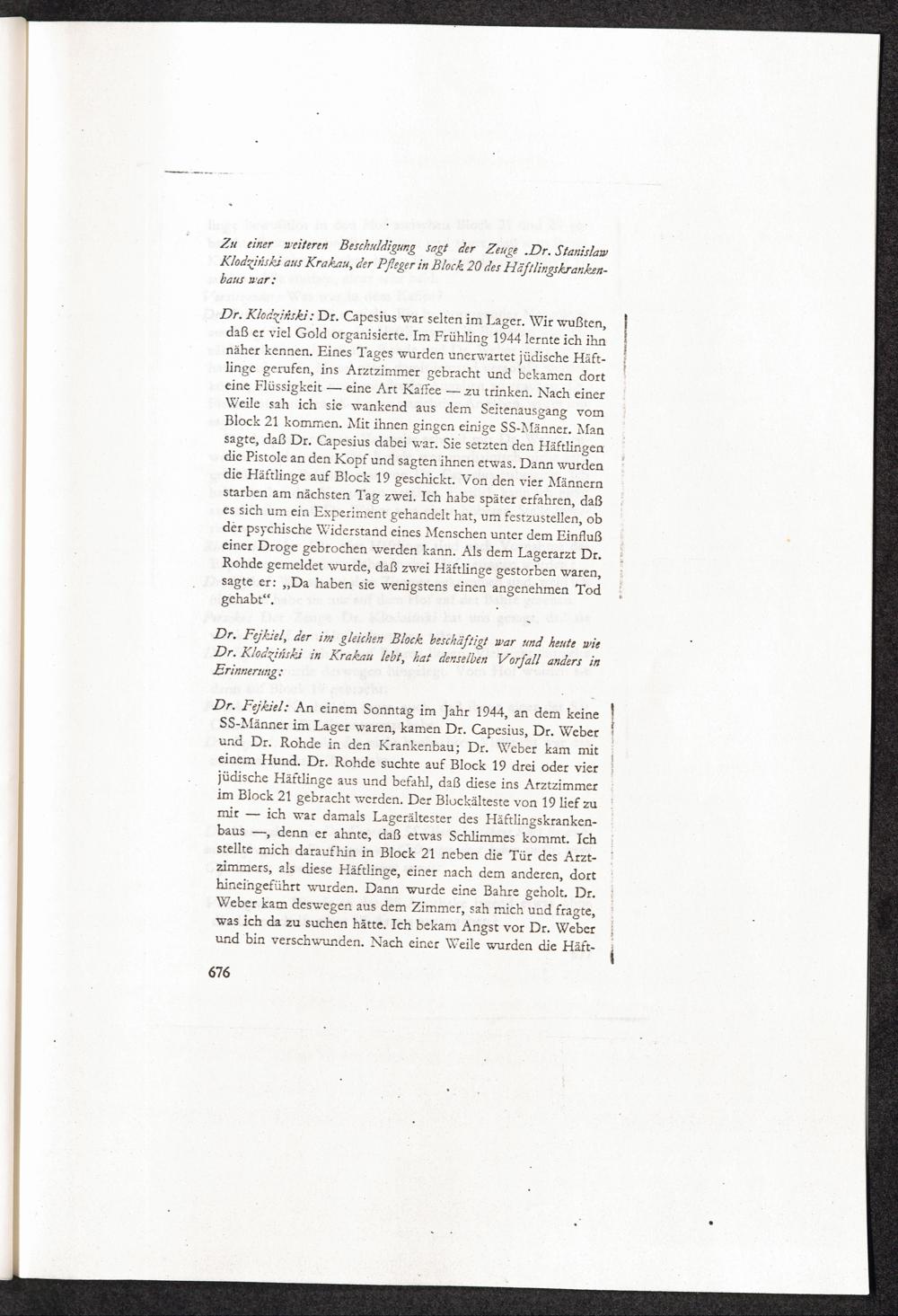 Pseudo-medizinische Versuche im KL Auschwitz Anlage IV: Hermann Langbein: Der Auschwitz-Prozeß. Eine Dokumentation 2