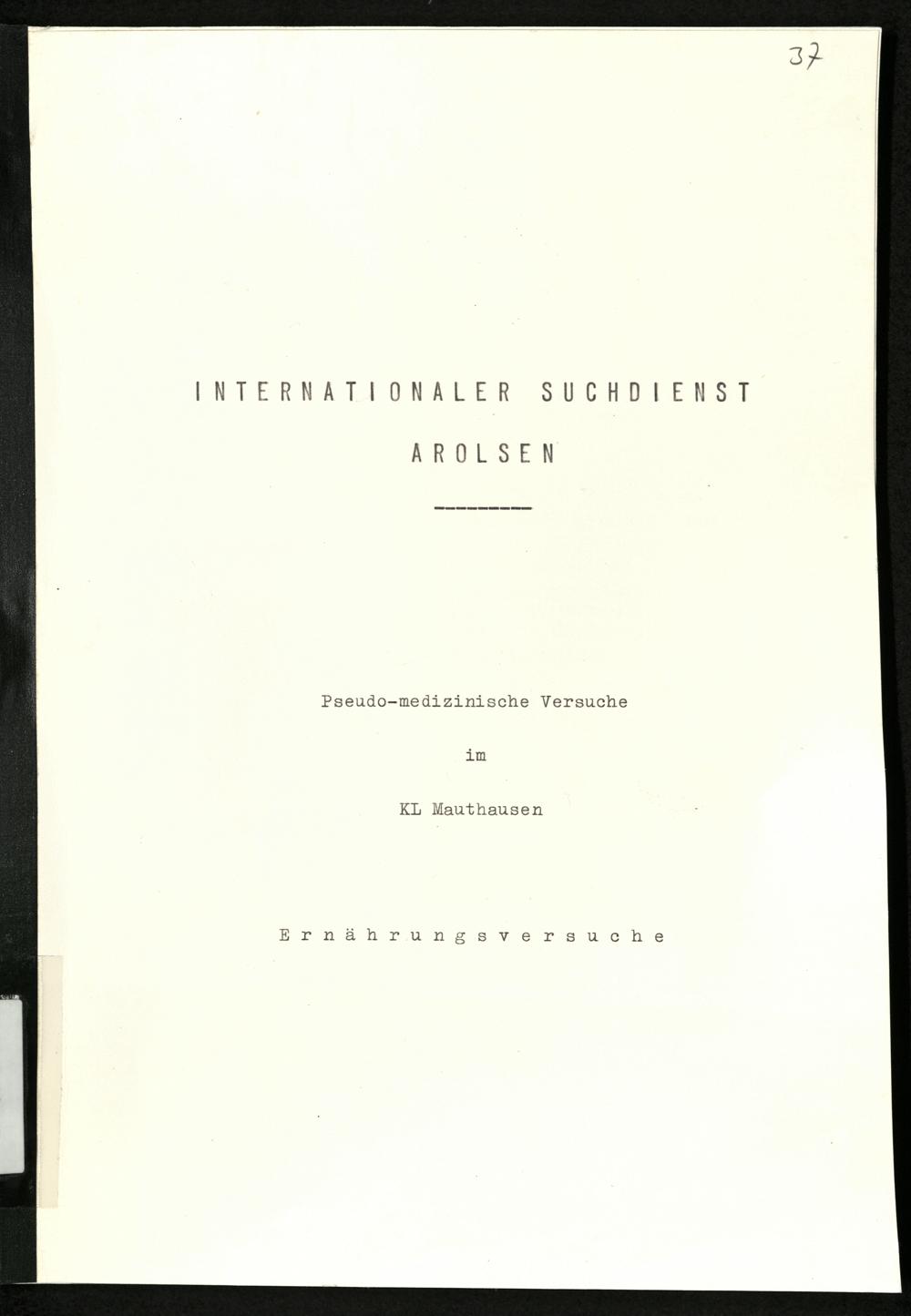 Pseudo-medizinische Versuche im KL Mauthausen : Ernährungsversuche / Internationaler Suchdienst