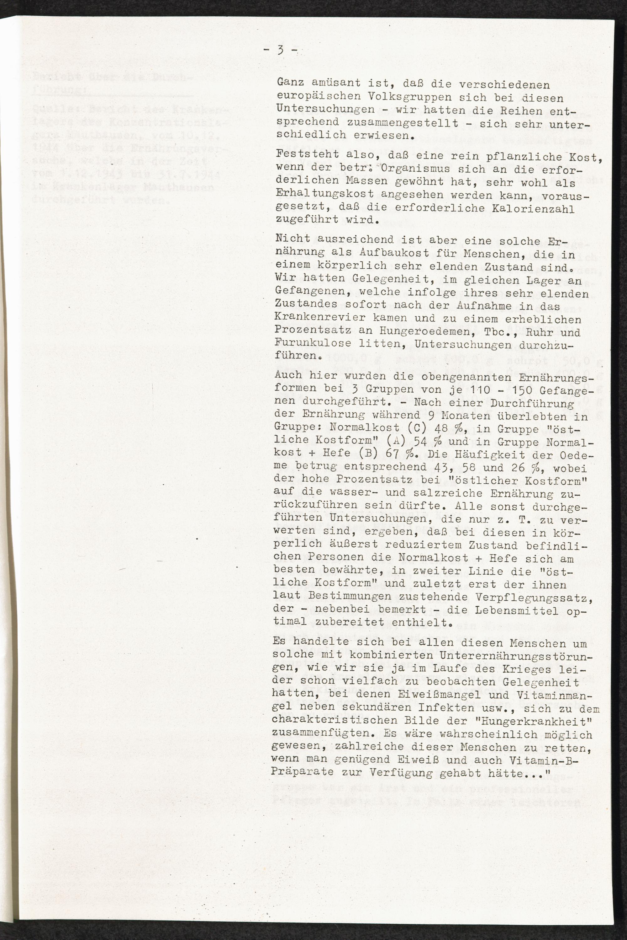 Pseudo-medizinische Versuche im KL Mauthausen Medizinische Menschenversuche: Ernährungsversuche