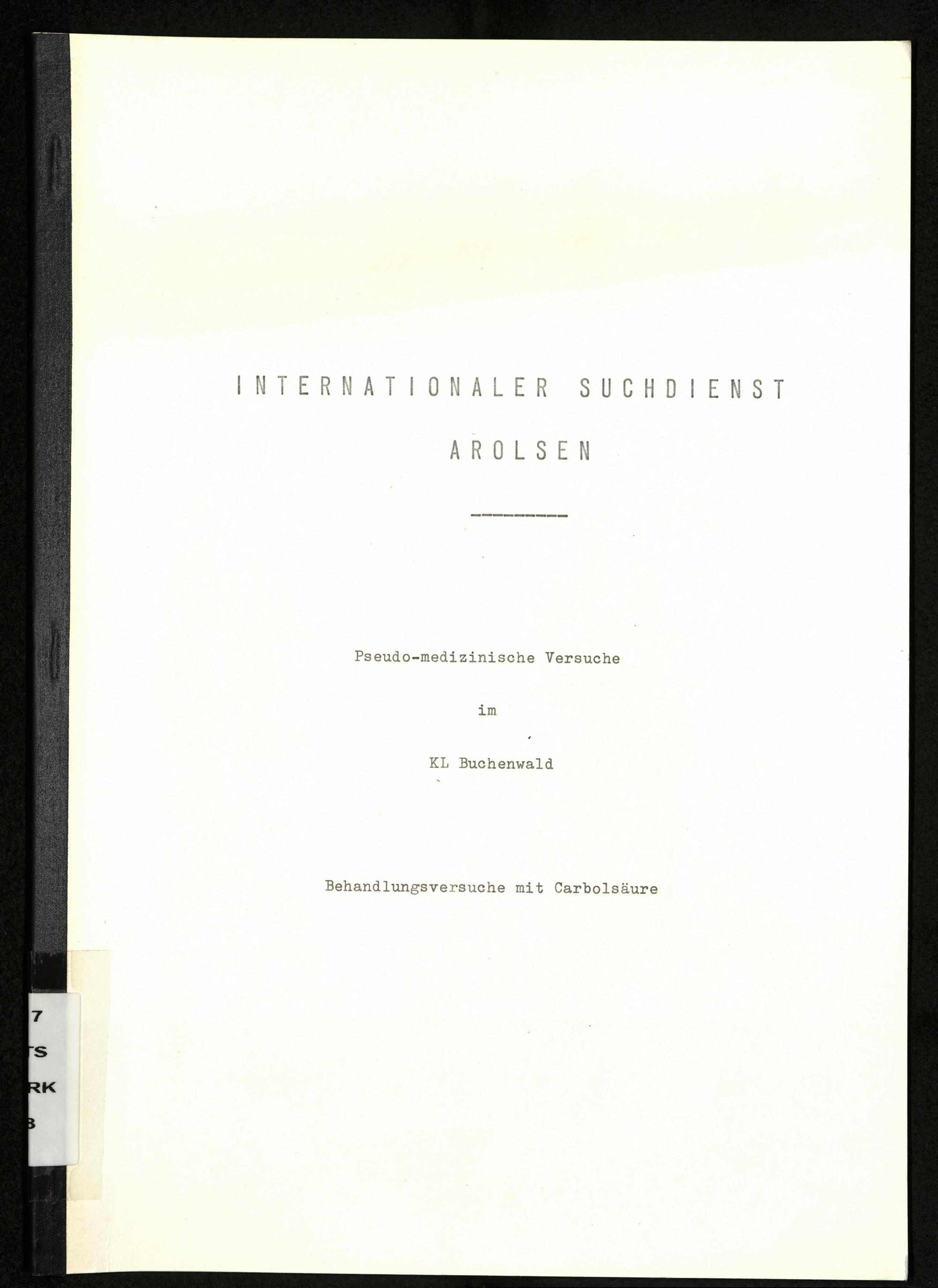 Pseudo-medizinische Versuche im KL Buchenwald : Behandlungsversuche mit Carbolsäure / Internationaler Suchdienst