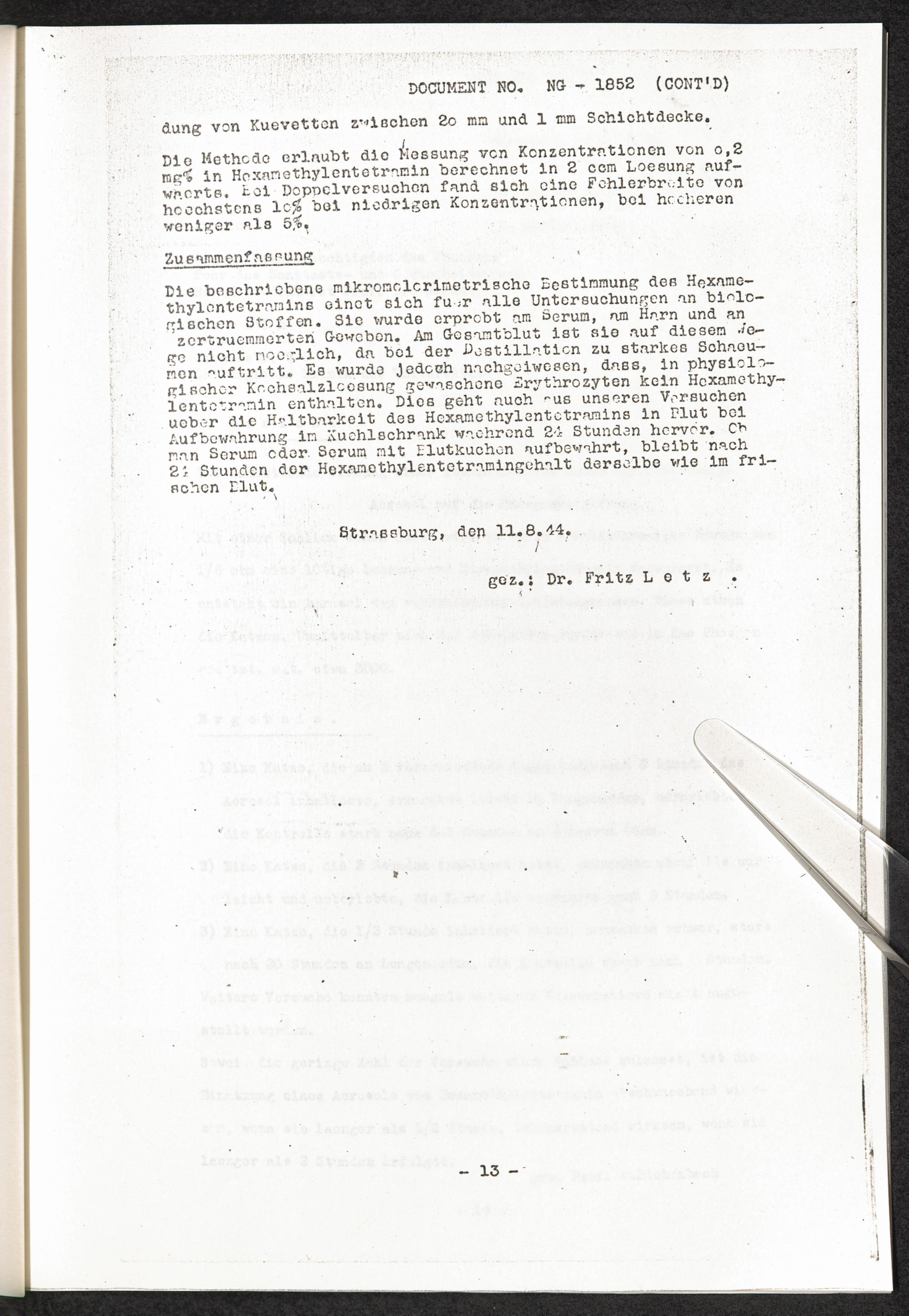 Pseudo-medizinische Versuche im KL Natzweiler : Phosgenversuche / Internationaler Suchdienst