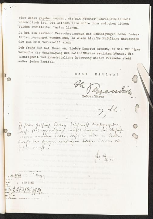 Pseudo-medizinische Versuche im KL Neuengamme : Entgiftung des durch Kampfstoffe verseuchten Trinkwassers / Internationaler Suchdienst