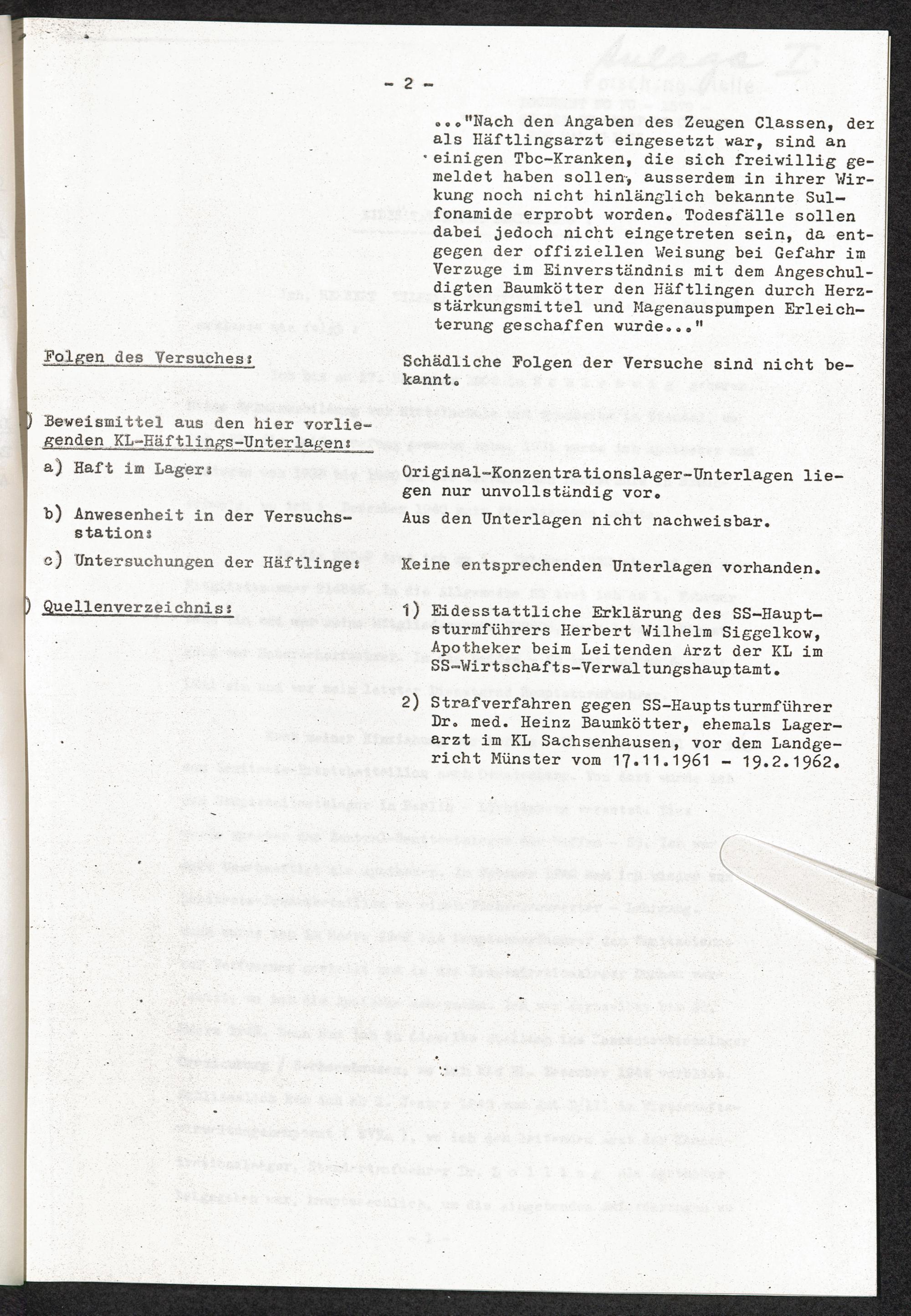 Pseudo-medizinische Versuche im KL Sachsenhausen : Behandlungsversuche an Tbc-Kranken / Internationaler Suchdienst