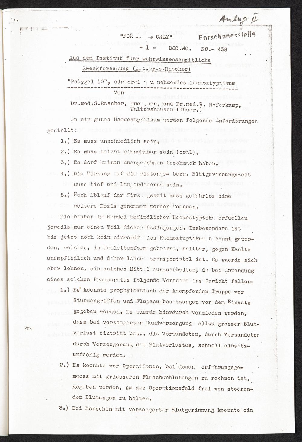 Pseudo-medizinische Versuche im KL Dachau : Erprobung des Blutstillmittels "Polygal 10" / Internationaler Suchdienst
