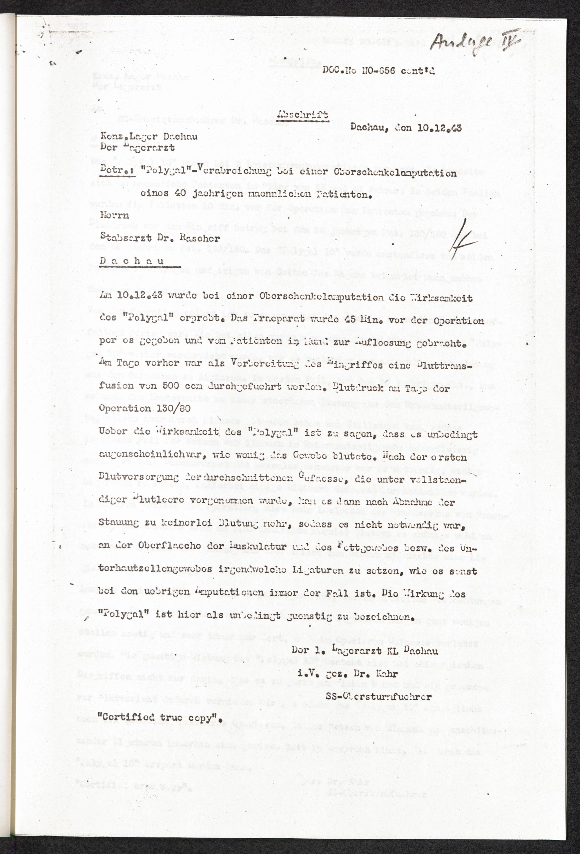 Pseudo-medizinische Versuche im KL Dachau : Erprobung des Blutstillmittels "Polygal 10" / Internationaler Suchdienst