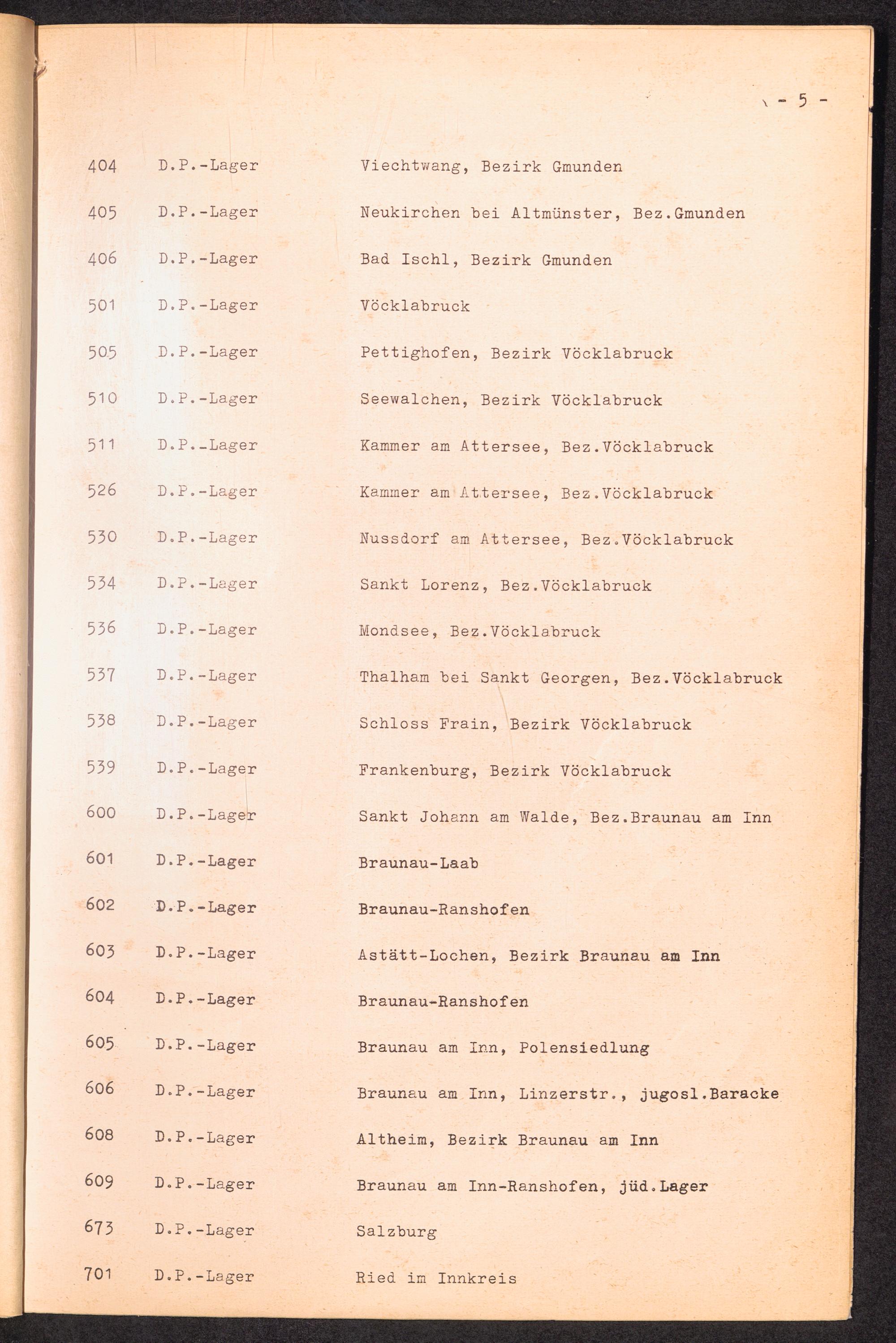 Nummern-Verzeichnis der DP-Lager in Österreich / International Tracing Service