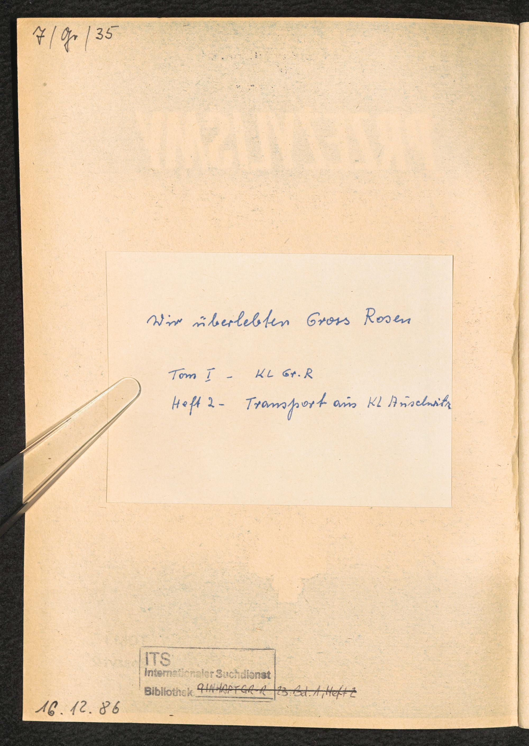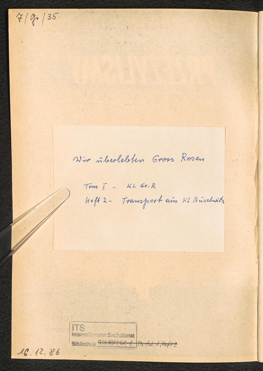 1983: Przezylismy Gross Rosen Tom I, Oboz kocentracyjny Gross-Rosen, Zeszyt 2 : Transport z K.L. Auschwitz