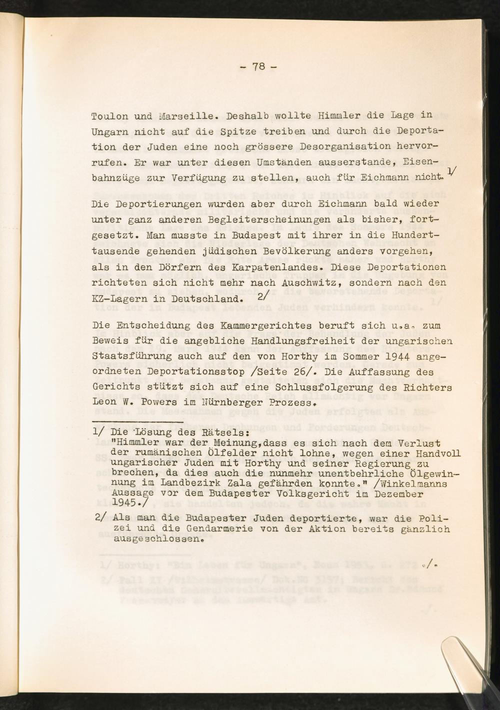 Entziehung der Wertgegenstände ungarischer Verfolgter in den KZ-Lagern : Erwiderung auf die Entscheidung des Kammergerichtes Berlin, 18 W 2492/2493/67 vom 27.6.1969 / Allgemeine Wertverkehrs-Bank A.G.