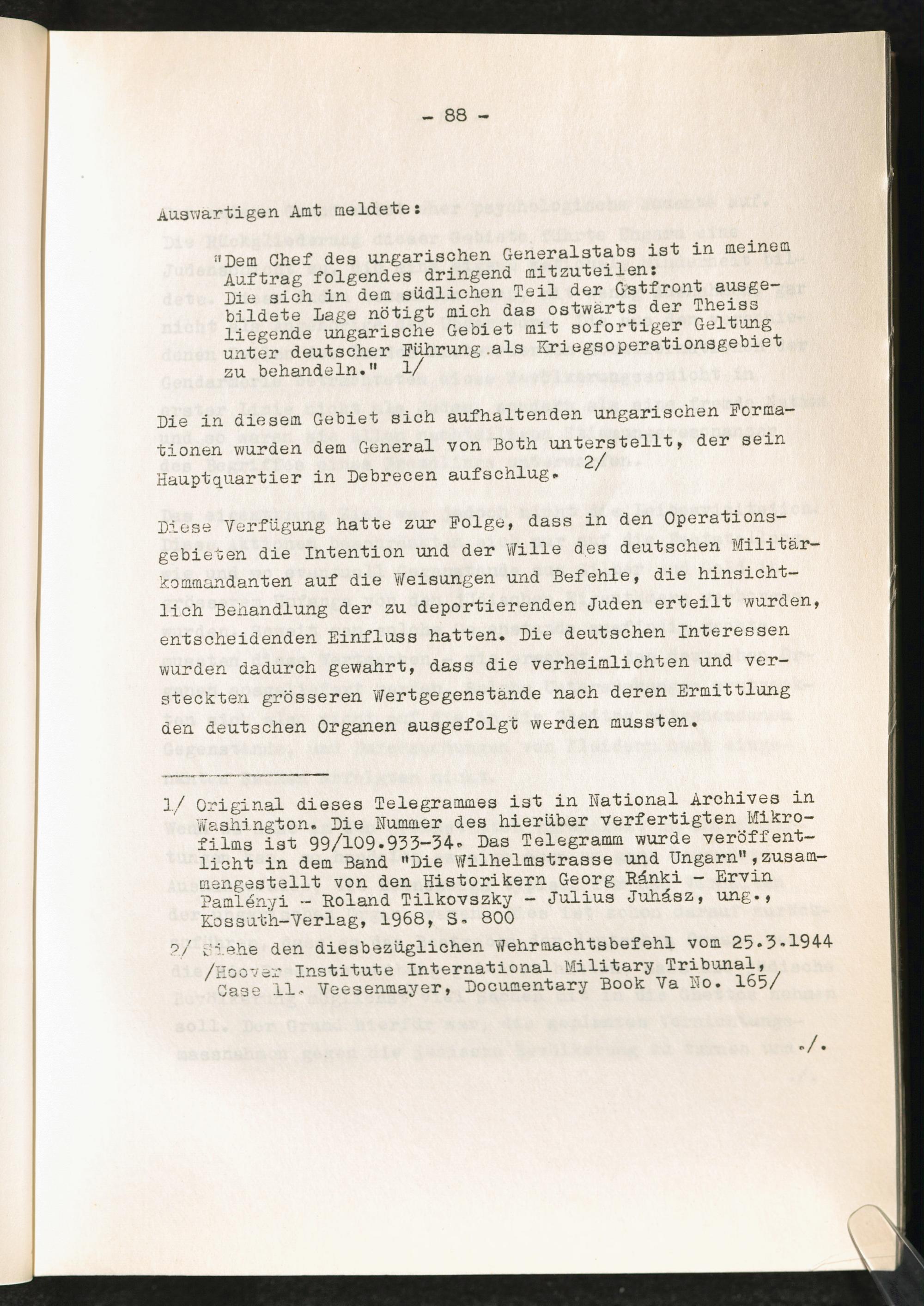 Entziehung der Wertgegenstände ungarischer Verfolgter in den KZ-Lagern : Erwiderung auf die Entscheidung des Kammergerichtes Berlin, 18 W 2492/2493/67 vom 27.6.1969 / Allgemeine Wertverkehrs-Bank A.G.