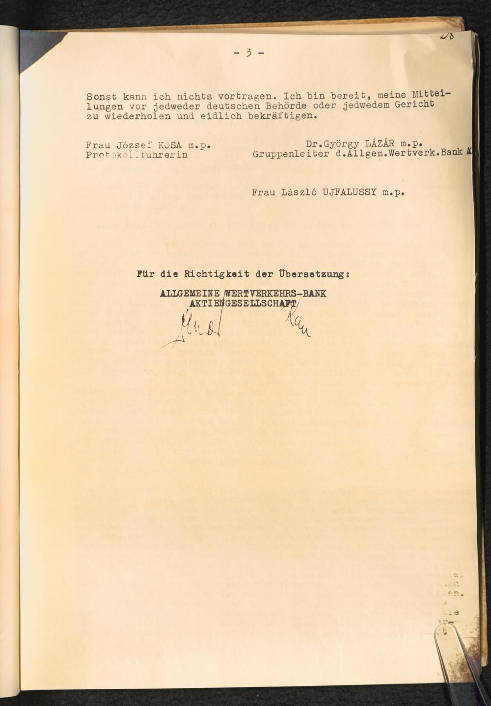 Entziehung der Wertgegenstände ungarischer Verfolgter in den KZ-Lagern : Erwiderung auf die Entscheidung des Kammergerichtes Berlin, 18 W 2492/2493/67 vom 27.6.1969 / Allgemeine Wertverkehrs-Bank A.G.