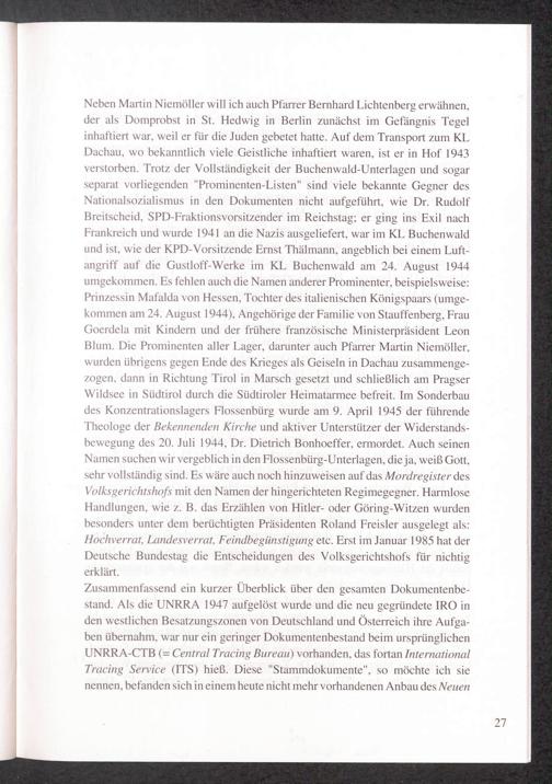 50 Jahre Suchdienst in Arolsen : Die nationalsozialistische Verfolgung im Spiegel der ITS-Dokumente