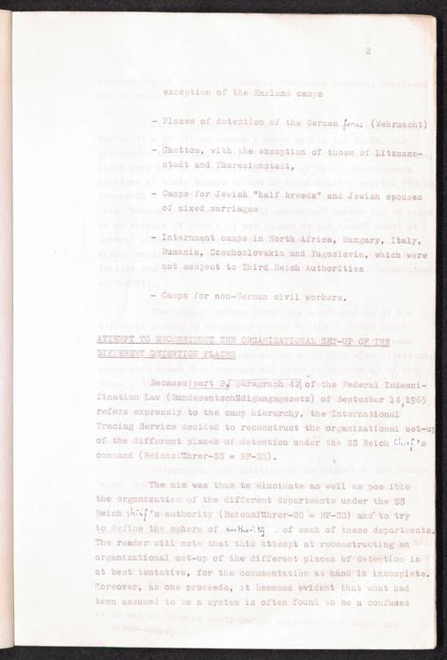 Provisional Catalogue of Concentration Camps and their Outlying Commandos as well as Other Detention Places under the Command of the RF-SS in Germany and German Occupied Territories (1939-1945) : Introduction / International Tracing Service (ITS)