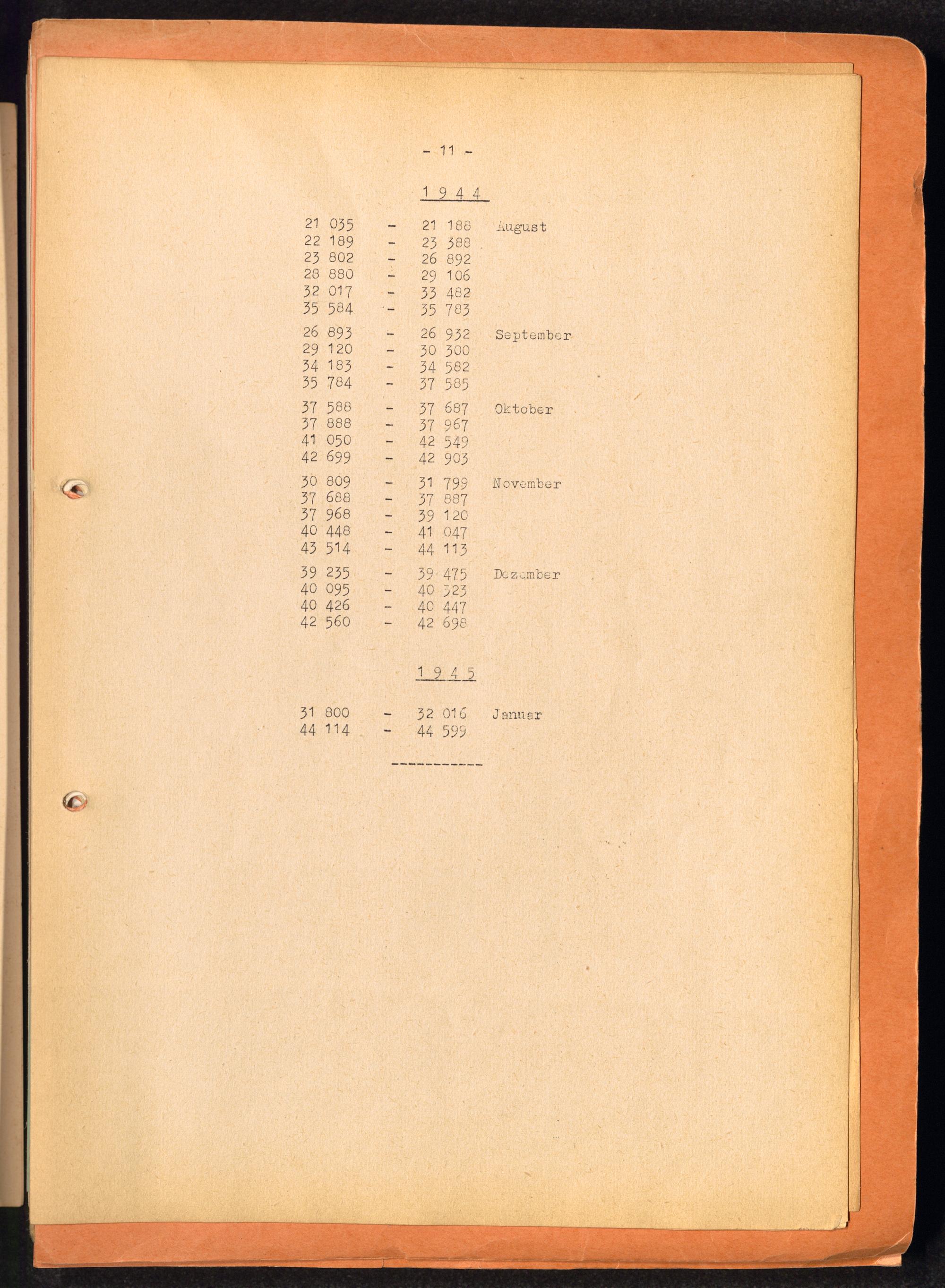 Häftlingsnummernzuteilungen / International Tracing Service (ITS)Transport-Übersichten (nach KL Au) / International Tracing Service (ITS)Häftlingsnummernverteilung in Konzentrationslagern / International Tracing Service (ITS)