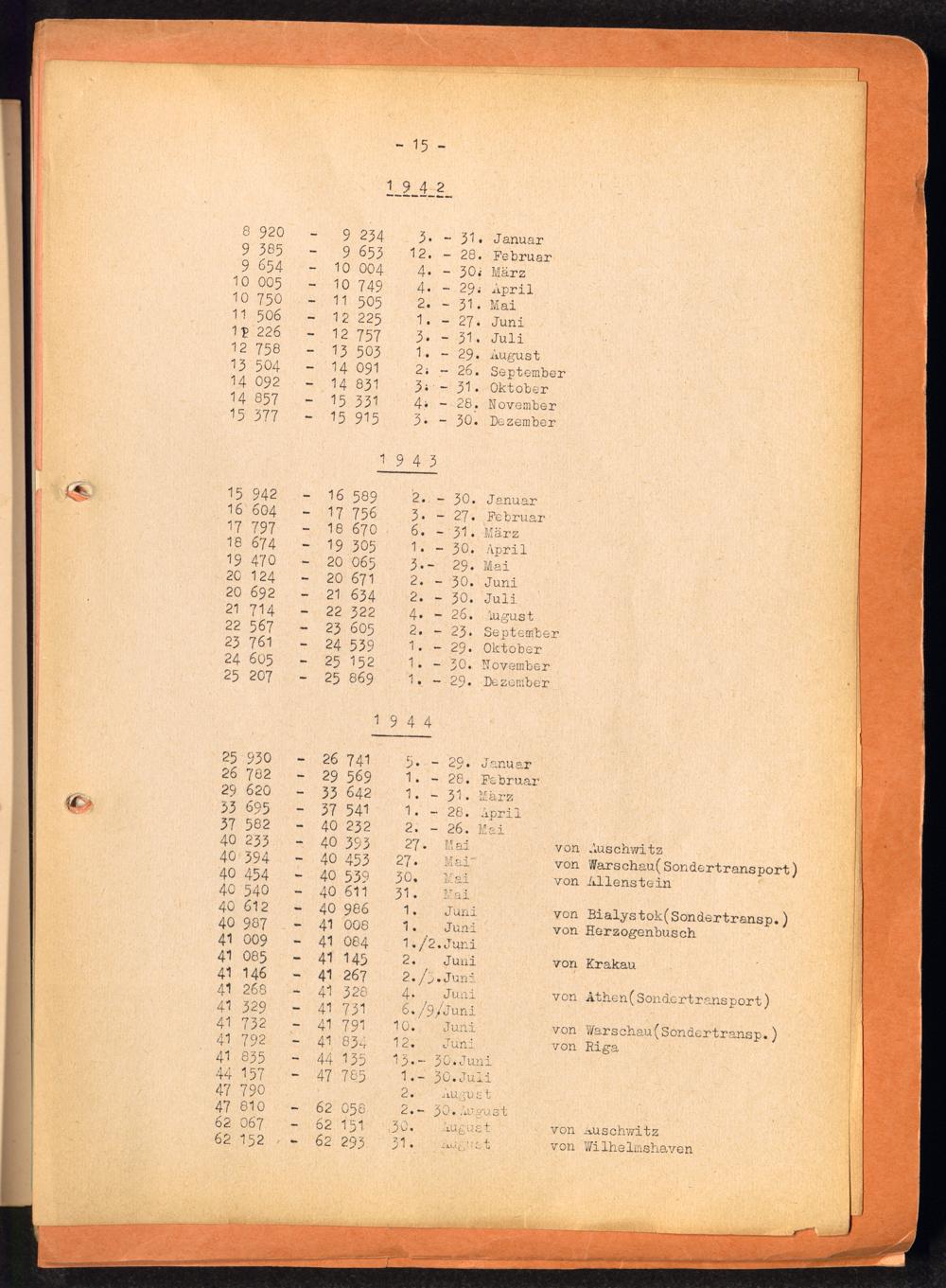 Häftlingsnummernzuteilungen / International Tracing Service (ITS)Transport-Übersichten (nach KL Au) / International Tracing Service (ITS)Häftlingsnummernverteilung in Konzentrationslagern / International Tracing Service (ITS)