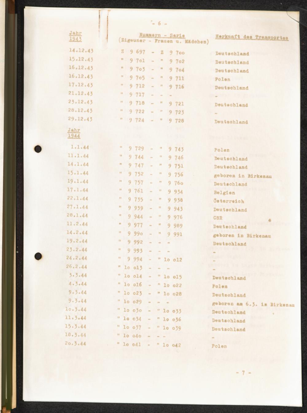 Häftlingsnummernzuteilungen Z Zigeuner