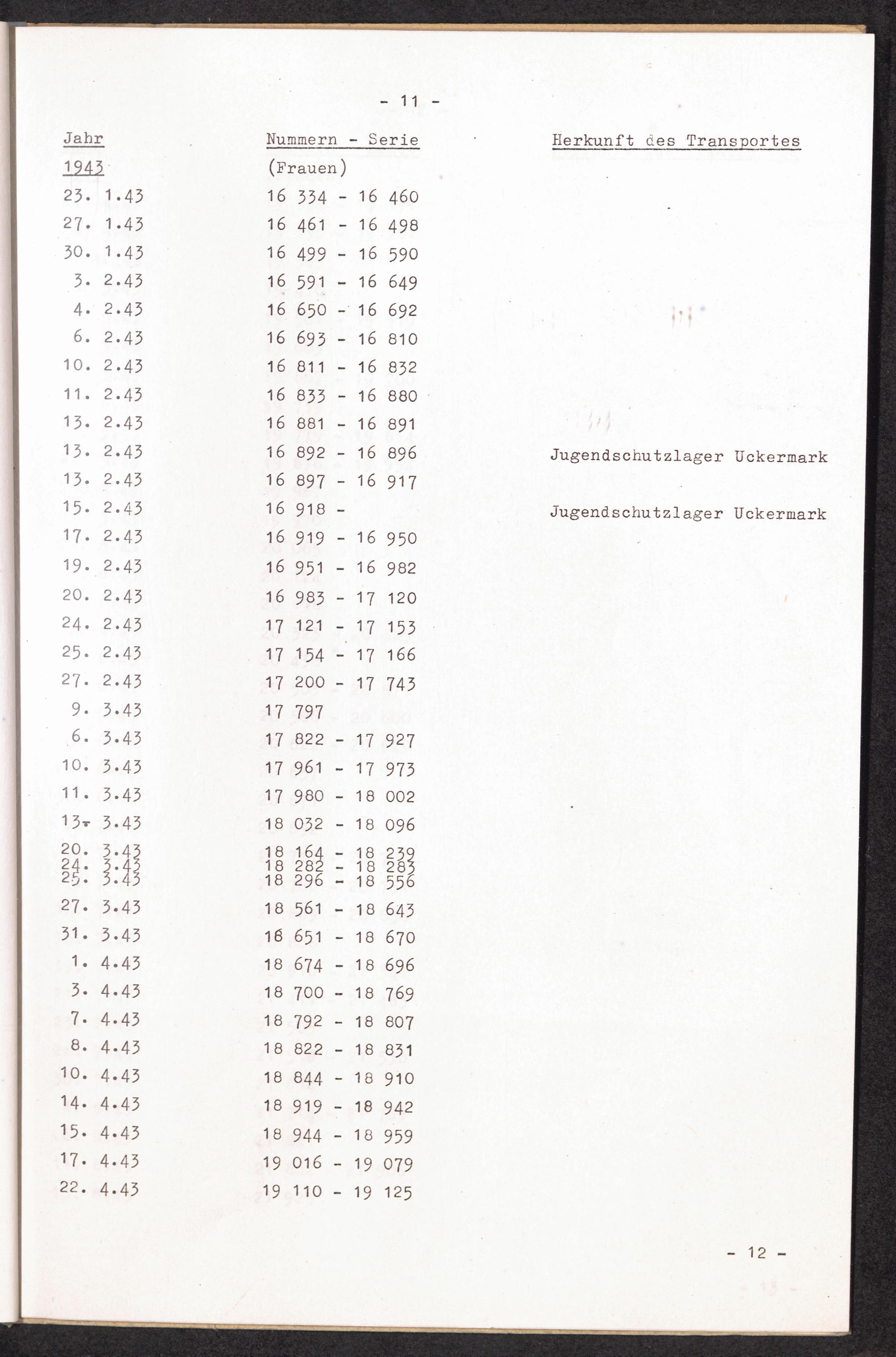 Nummernbesetzung für Konzentrationslager Lichtenburg und Ravensbrück / International Tracing Service